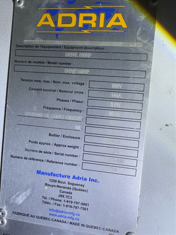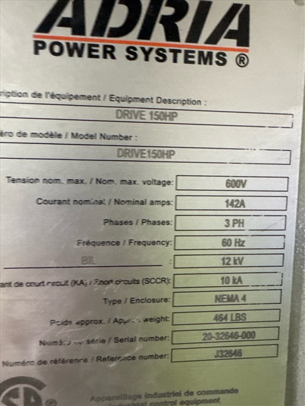(2) Adria/ABB drives, ser. no.'s 20-328-46-000 and 19-31779-000, 150 hp, 600V, 124A, 60 hz, 3 ph, 12 kv, 10 ka [Loc. Blue Zone, Level M]