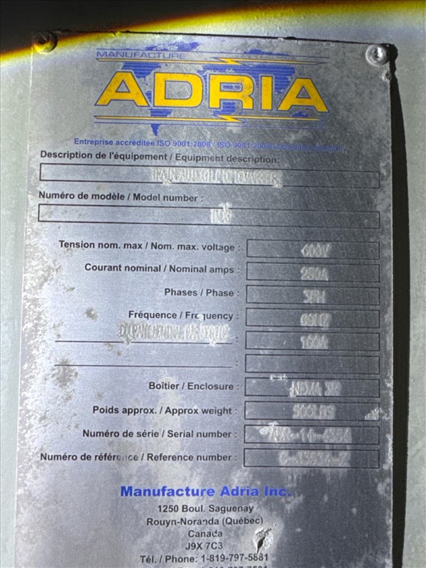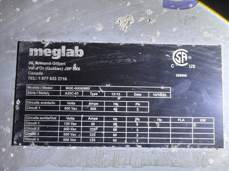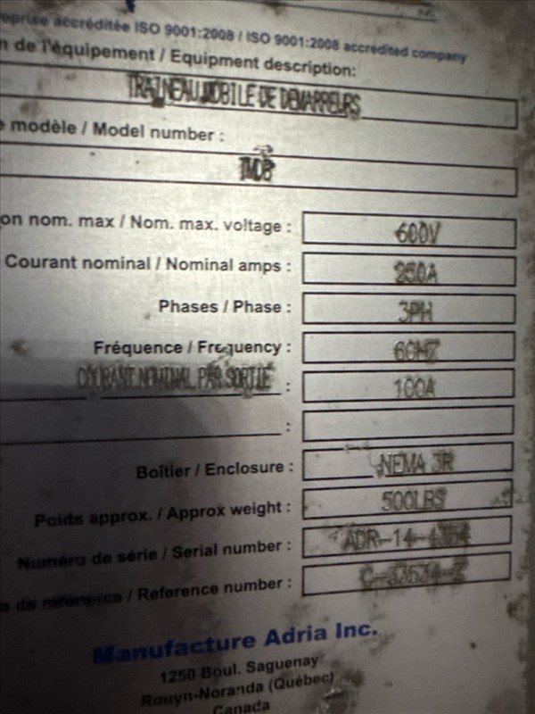 portable development module, pallet mounted, incl.: (1) Adria , mod. TM08, ser. no. ADR-14-4304, 600V, 100A/250A, 60 hz, 3 ph and (1) MegaLab , mod. MGE-00060800, ser. no. A25C-01, 600V, 800A, 60 hz, 3 ph [Loc. Blue Zone, Level M]