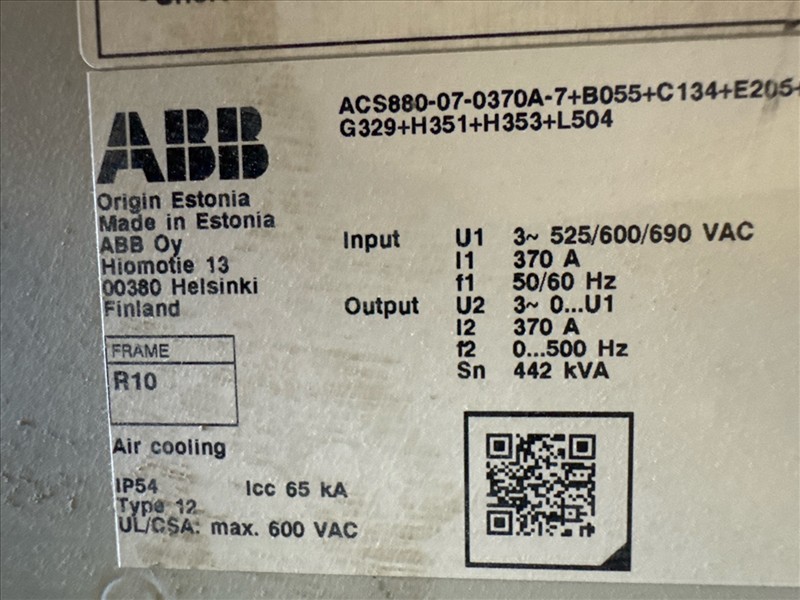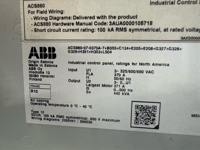 (2) ABB drives, mod. AC850-07-0370A-7-B055-C134-E205-E208-G327-G328-G329-4351-H353-L504, 400 hp ea. [Loc. Blue Zone, Level M]