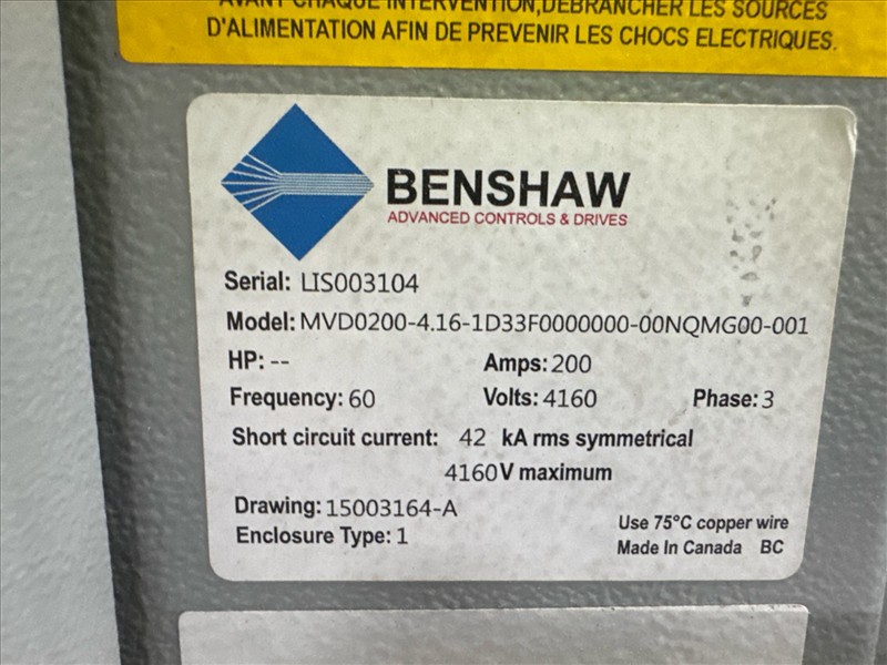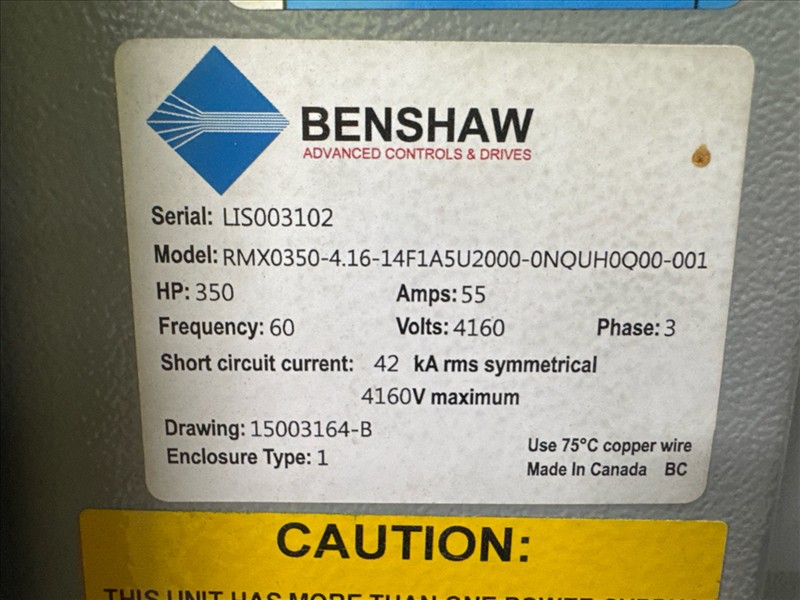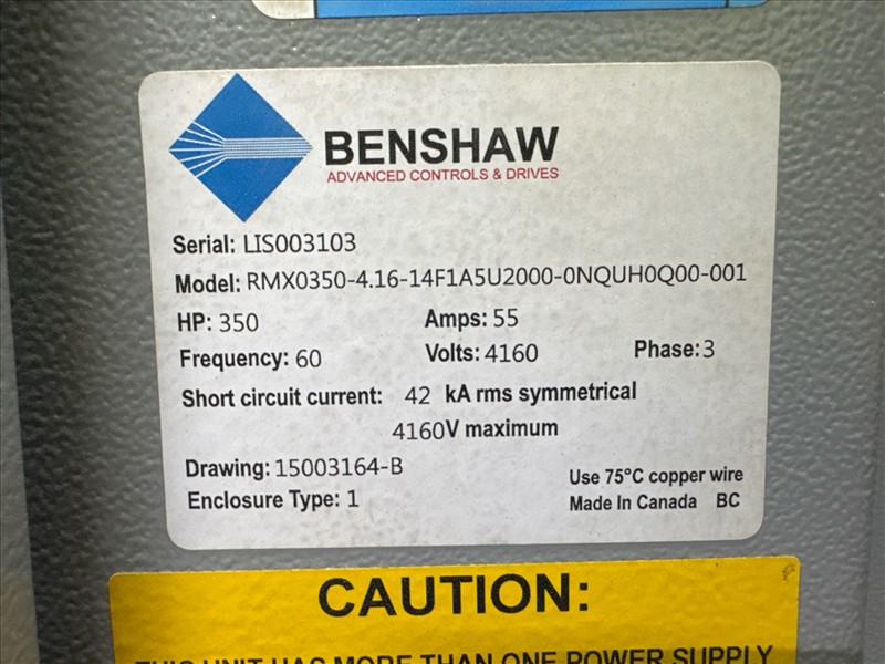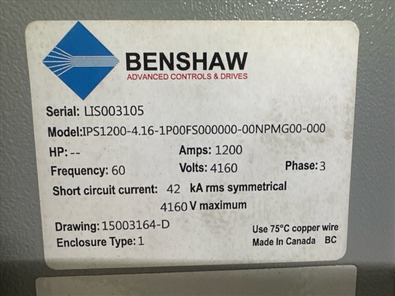 (3) Benshaw 350 hp drive, mod.LTS00314, 4160V, 55A, 60 hz, 3 ph, 42 ka w/ AB, mod. LTS003105, 4160V, 1200A, 60 hz, 3 ph, 42 ka [Loc. FAR]