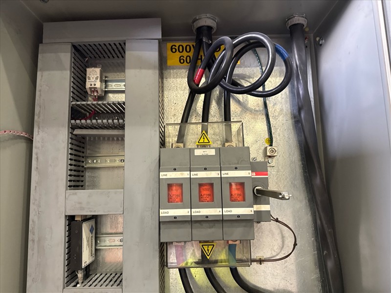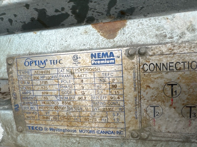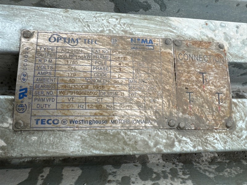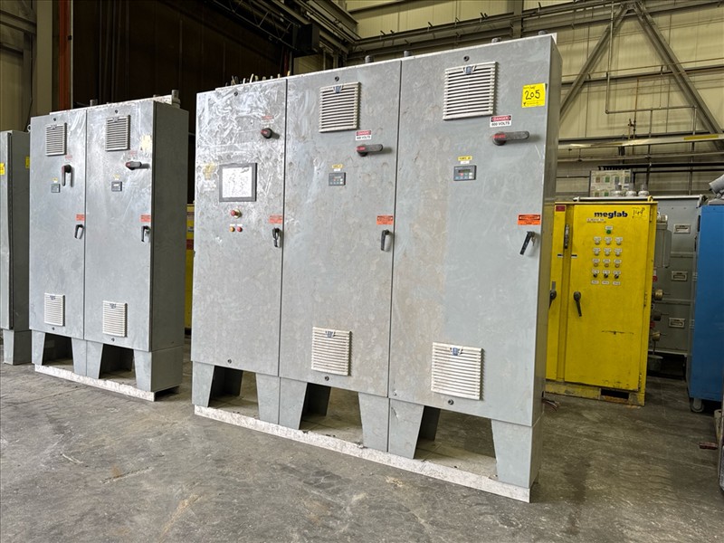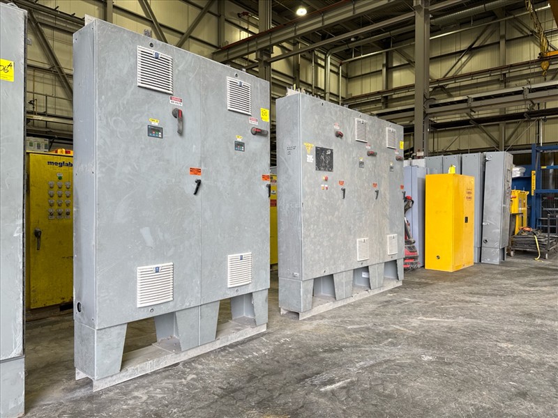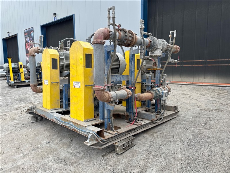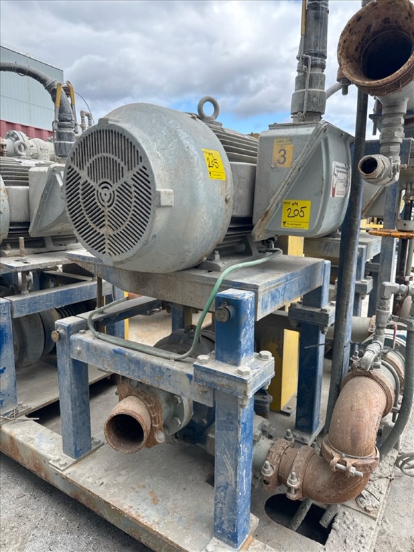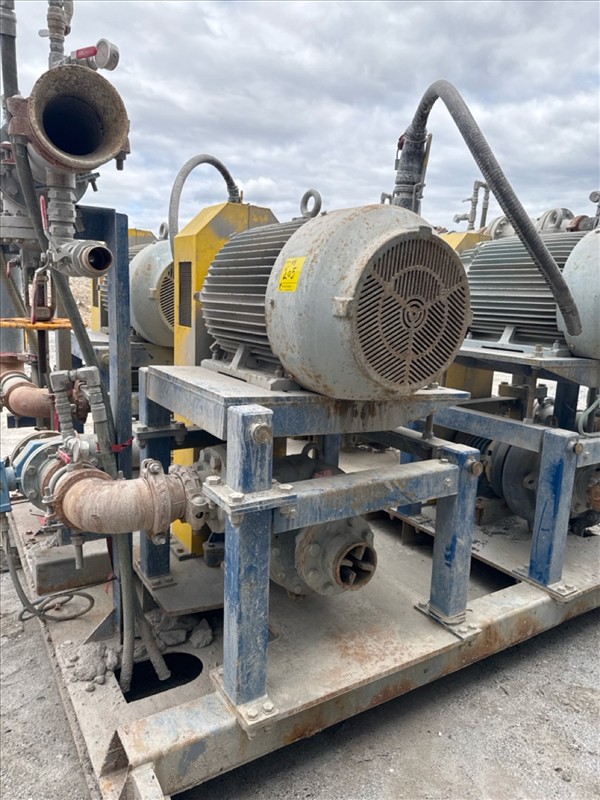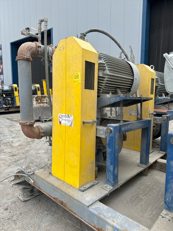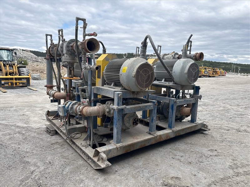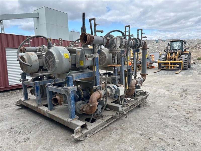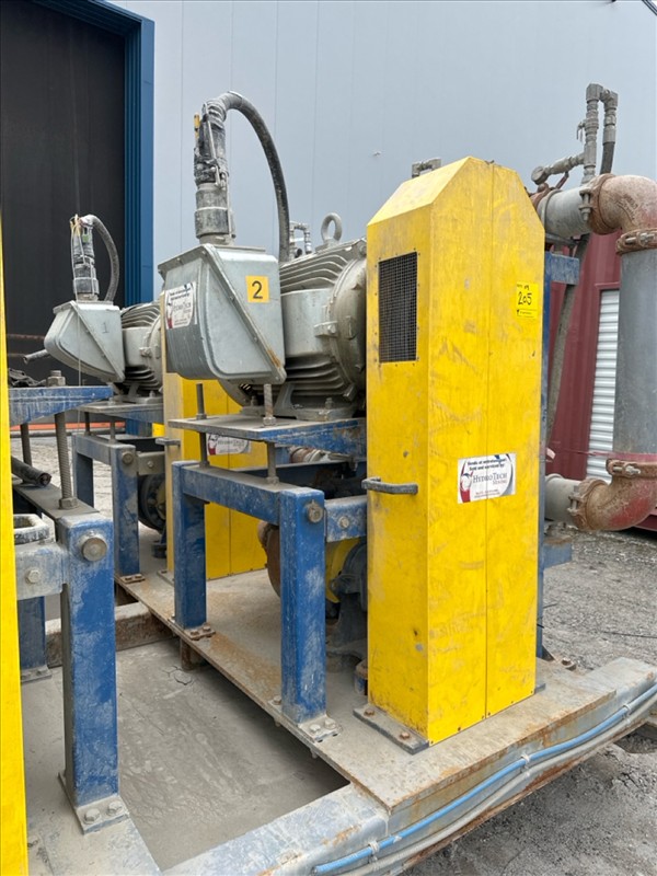 HydroTech pump pallet, incl.: (4) Warman centrifugal pumps, 200 hp ea. c/w (4) HydroTech/Benshaw drives, 200 hp ea., 600V and HydroTech touch screen control panel/PLC, mod Quadruplex 200hp 575V, 600hp, 575V, 768, 60 hz, 3 ph (2nd Loc. Garage) c/w 30 cu. m. tank (3rd Loc. Red Line Pad) [Loc. Portal Pad]