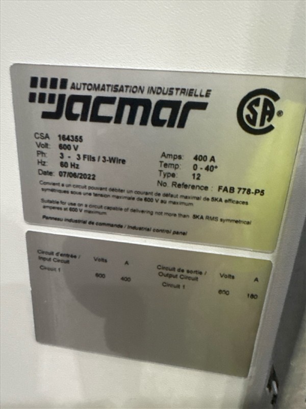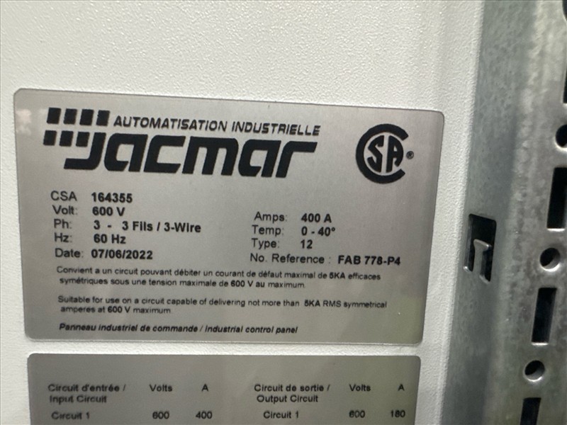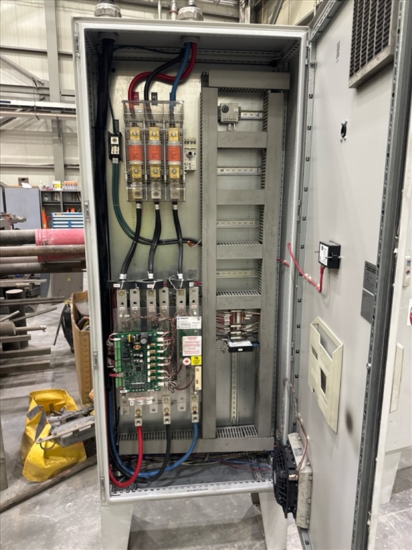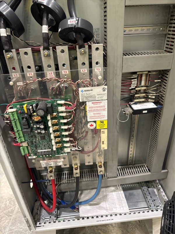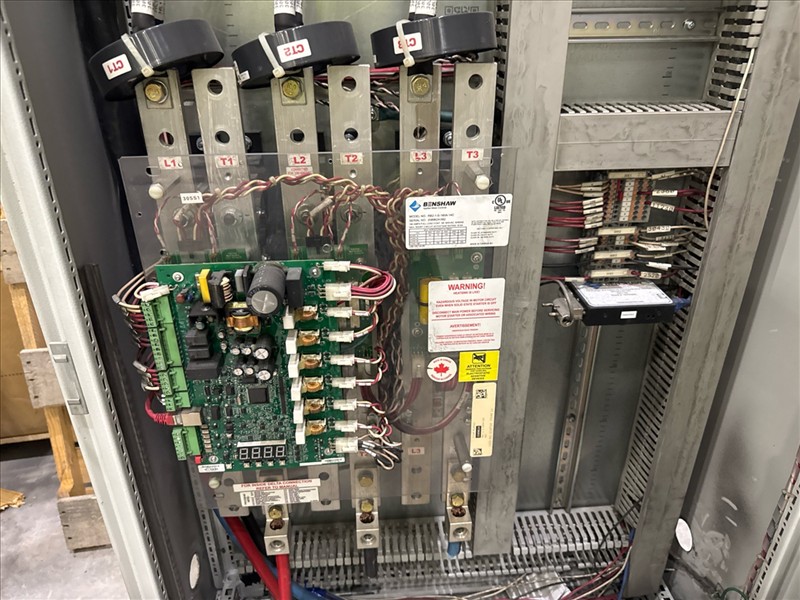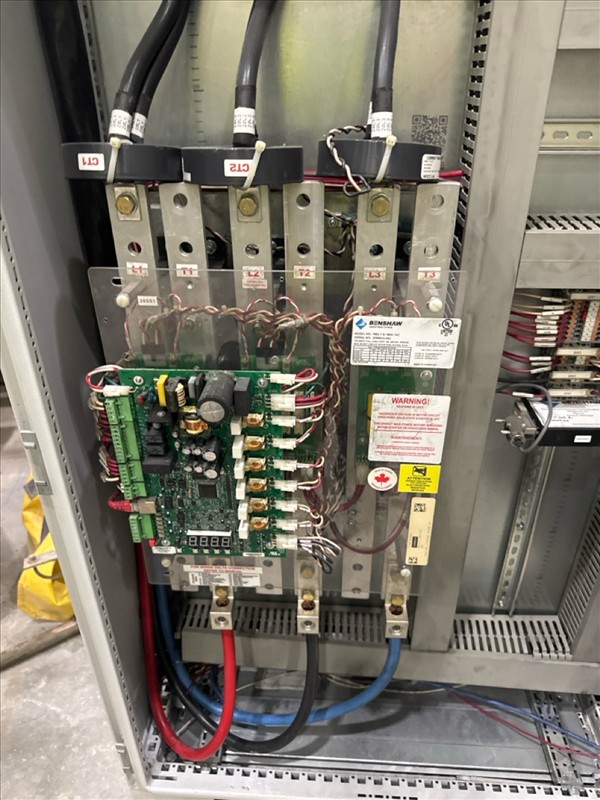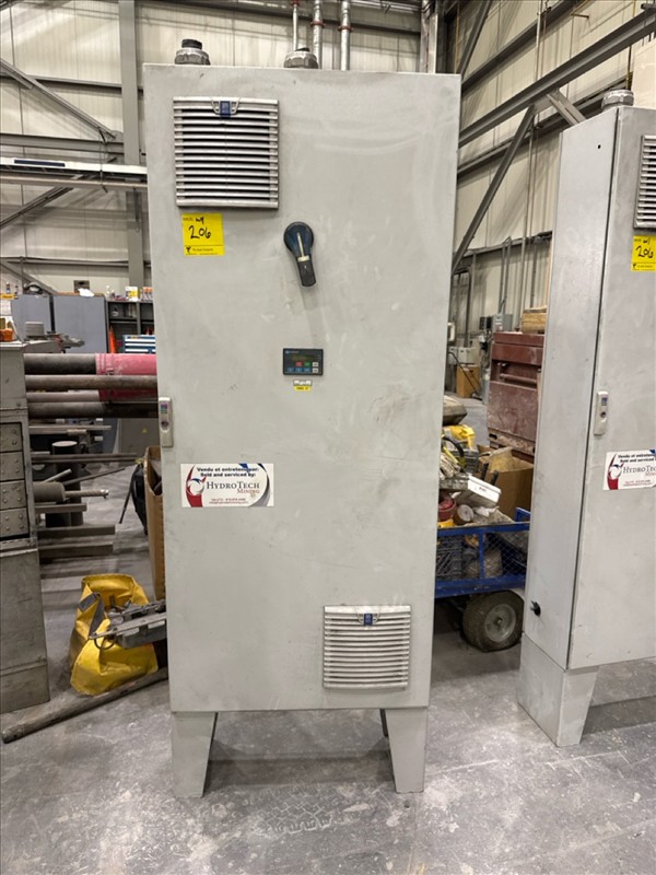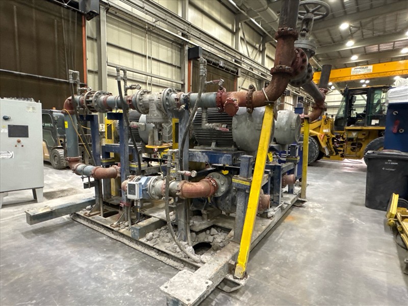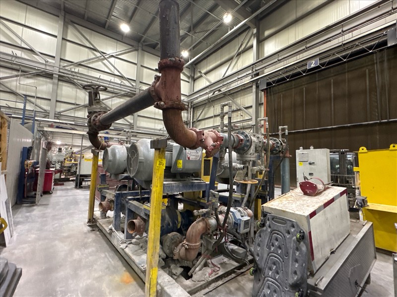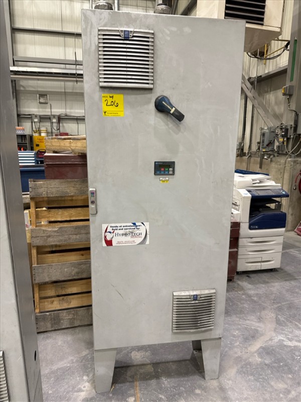 HydroTech pump pallet, incl.: (4) Warman centrifugal pumps, 200 hp ea. c/w (4) HydroTech/Benshaw drives, 200 hp ea., 600V and HydroTech touch screen control panel/PLC, mod Quadruplex 200hp 575V, ser. no. ELE-36994-OPP21-089, 600hp, 575V, 768, 60 hz, 3 ph (2nd Loc. Garage) c/w 30 cu. m. tank (3rd Loc. Red Line Pad) [Loc. Portal Pad]