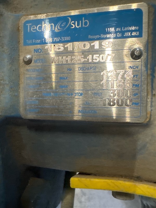 (4) TechnoSub high pressure pumps, mod. MH125-150/7, 300 hp, 1274 ft. head, 1165 gpm, 1800 rpm c/w (5) base platforms (2nd Loc. Red Line Pad) [Loc. Portal MegaDome/Red Line Pad]