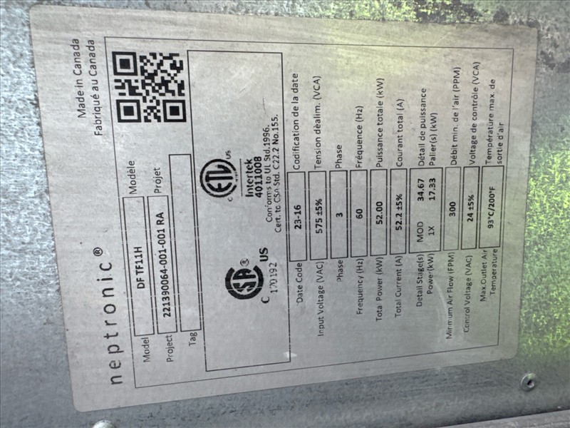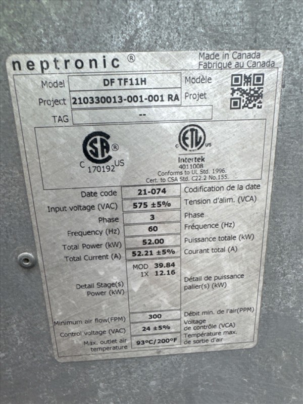 (2) Cook mixed flow mine fans, 25 in., 7.5 hp w/ Neptronic electric duct heaters [Loc. Processing MegaDome]