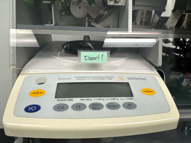 auto depositor w/ Sartorius Extend balance, mod. ED323S-CWN, 320 g - 0.001 g w/ (10) sorting vials and Leveno touch screen controls [Loc. Red Zone, Lab]