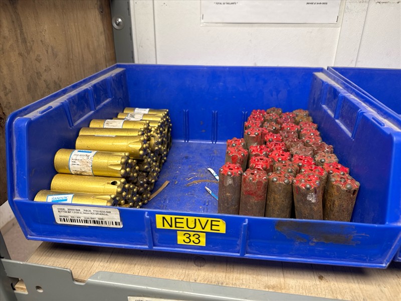 (over 1400 pcs.) NEW and used misc. Sandvik/Atlas Copco, etc. button bits, adapters, etc. FOLLOW THIS LINK FOR A DETAILED LISTING: https://www.managingyourassets.com/uploads/documents/lot_276_additional_detailed_listing.pdf\n [Loc. Miners Dry]
