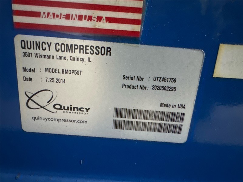 NEW Quincy air compressor, mod. BNQP55T, ser. no. UT2451756, 5 hp, tank mounted [Loc. FAR]