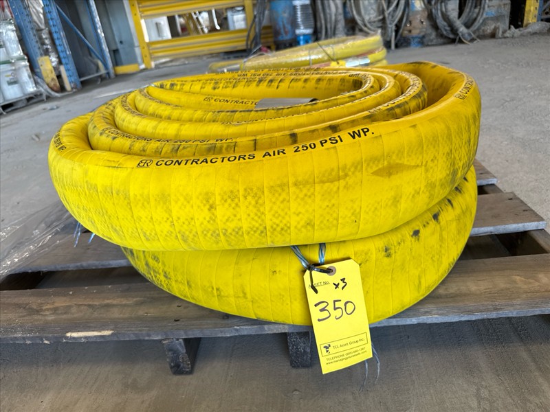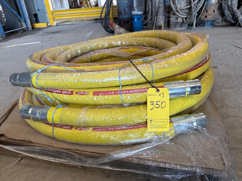 Industrial rubber hose: (1) 300 PSI, 3 in. x 26 ft. w/ Victolic end, (2) 300 PSI, 4 in. x 25 ft. w/ Victolic end, [Loc. Portal MegaDome]