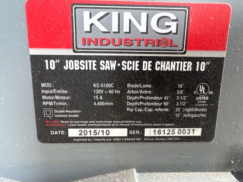 King table saw, mod. KC-5100C, 19 in., mobile [Loc. Portal MegaDome, Shed]