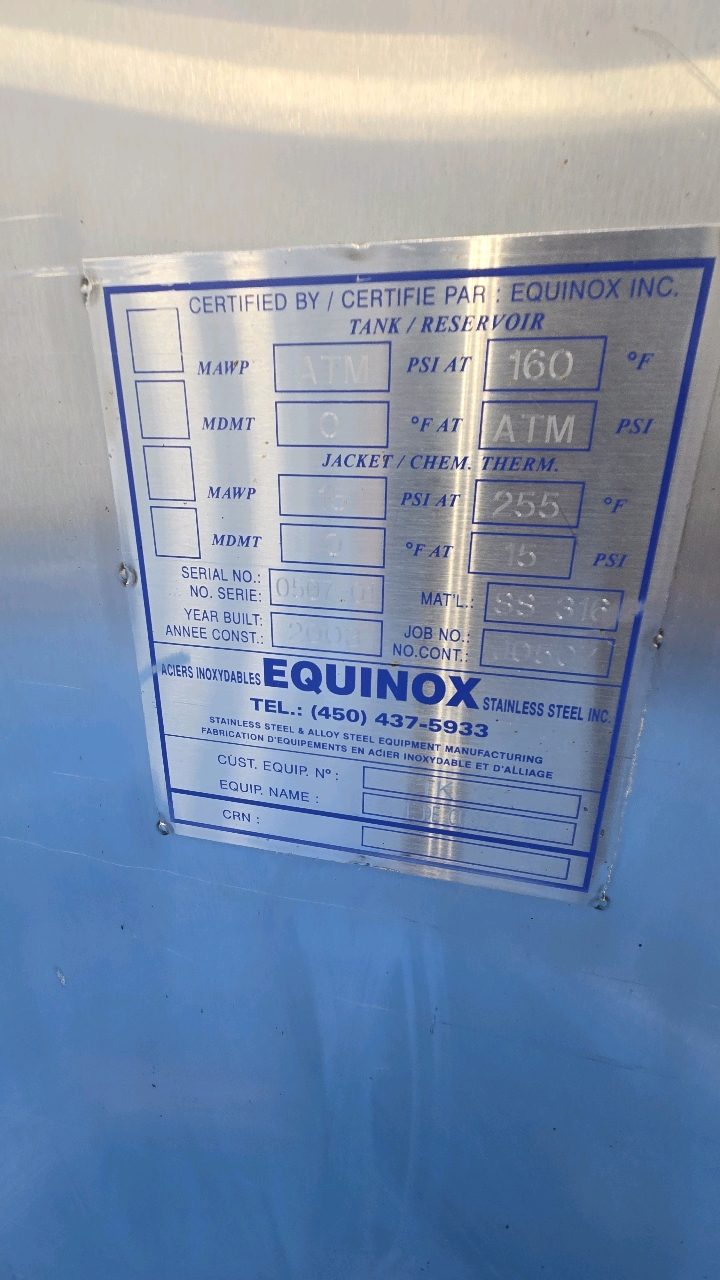 Equinox extractor, jacketed, model TK 190, 100L, s/n 0507.01 (PRO-068)