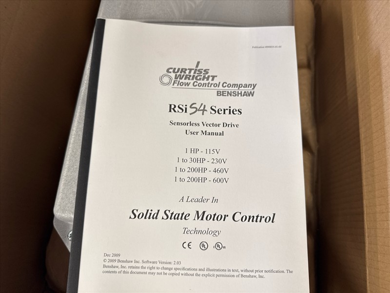 Benshaw sensorless vector AC drive, mod. RSiS4, 15 hp in - 10 hp out [Loc. Maintenance]