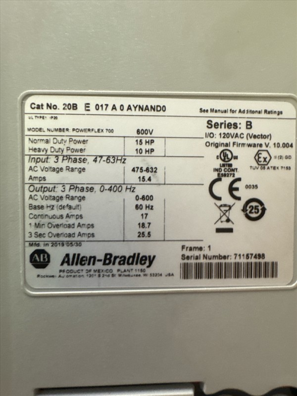 Allen-Bradley AC drive, mod. PowerFlex 700, 16 hp [Loc. Maintenance]