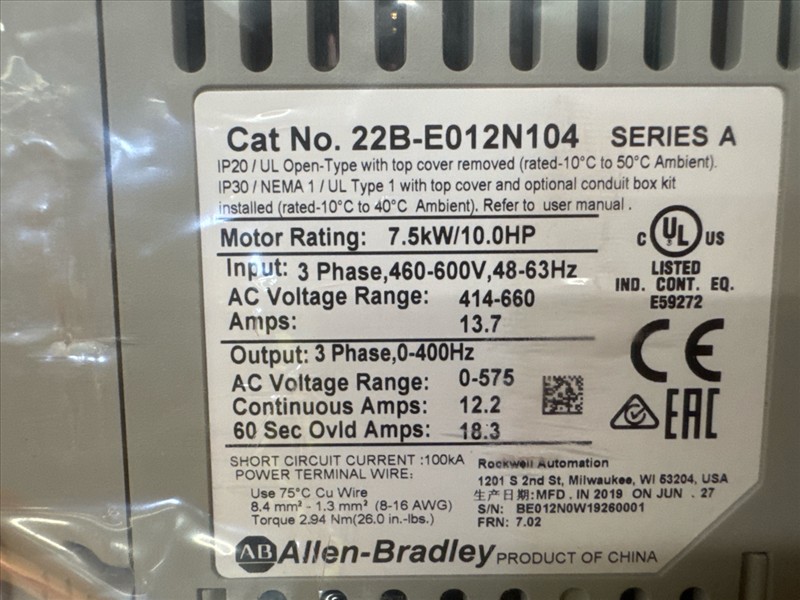 NEW Allen-Bradley AC drive, mod. PowerFlex 40, 15 hp [Loc. Maintenance]