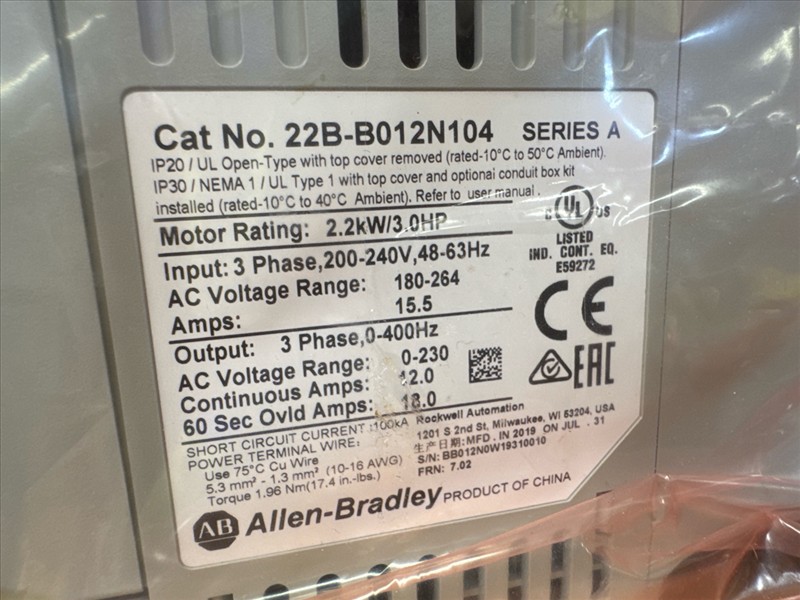 NEW Allen-Bradley AC drive, mod. PowerFlex 40, 2 hp [Loc. Maintenance]