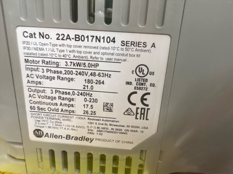NEW Allen-Bradley AC drive, mod. PowerFlex 4, 5 hp [Loc. Maintenance]