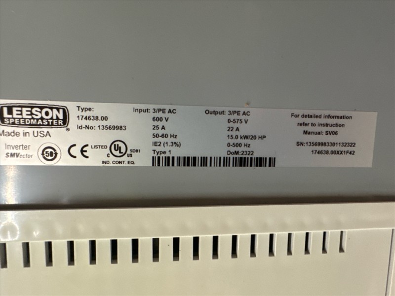NEW Leeson SpeedMaster flux vector AC drive, mod. SM2, 20 hp [Loc. Maintenance]