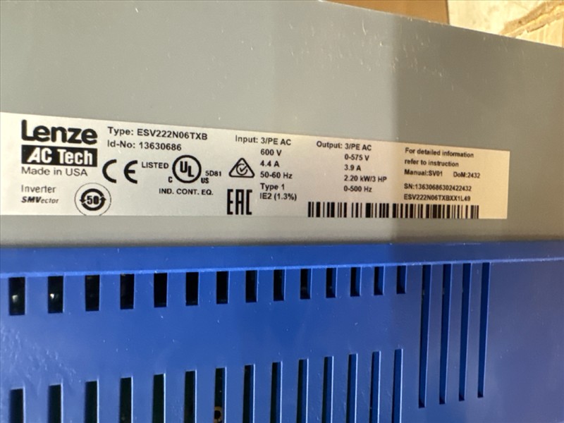 Lenze AC Tech SM vector AC drive, 3 hp [Loc. Maintenance]
