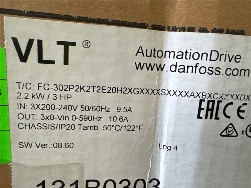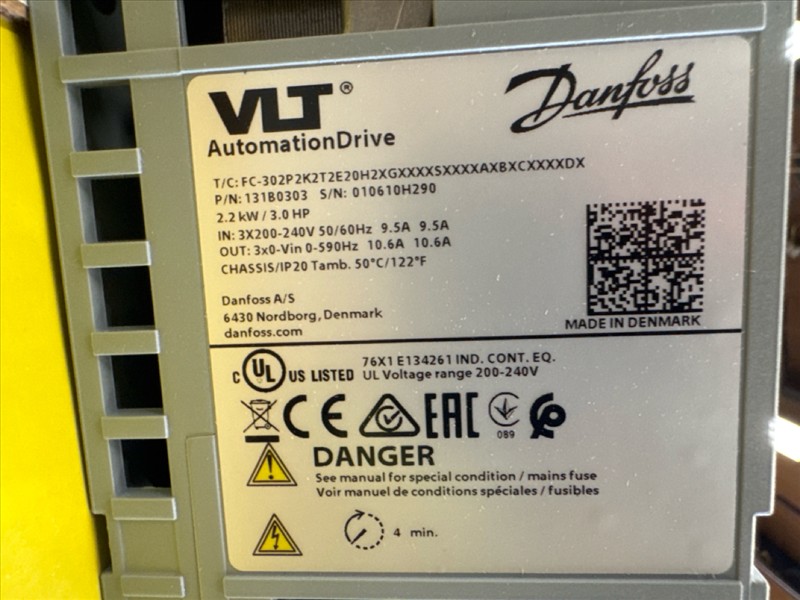 Danfoss micro AC drive, mod. VLT, 3 hp [Loc. Maintenance]