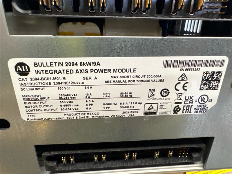 NEW Allen-Bradley integrated power supply/servo drive module, mod. Kinetic 6200/6500, 6 kW converter, 400/460V w/ Kinetix 6X00 Bulletin 2094, 6 kW, 9A [Loc. Maintenance]
