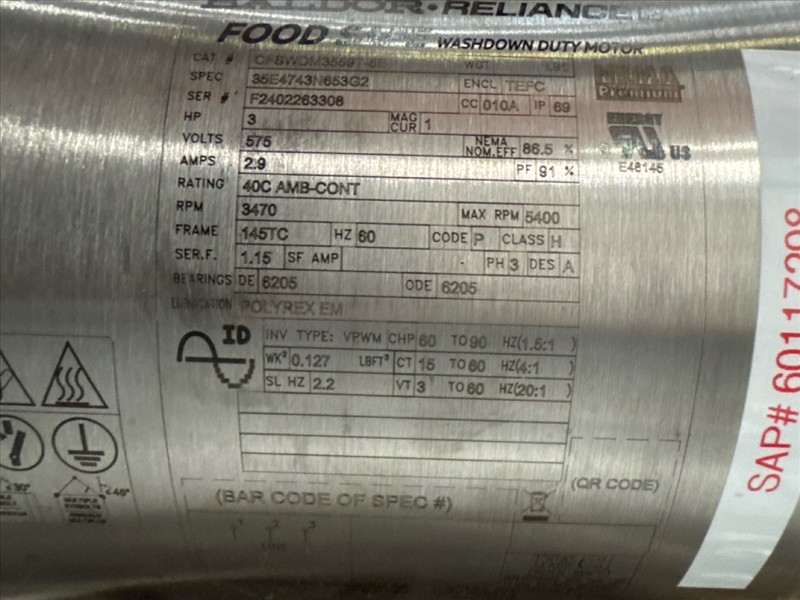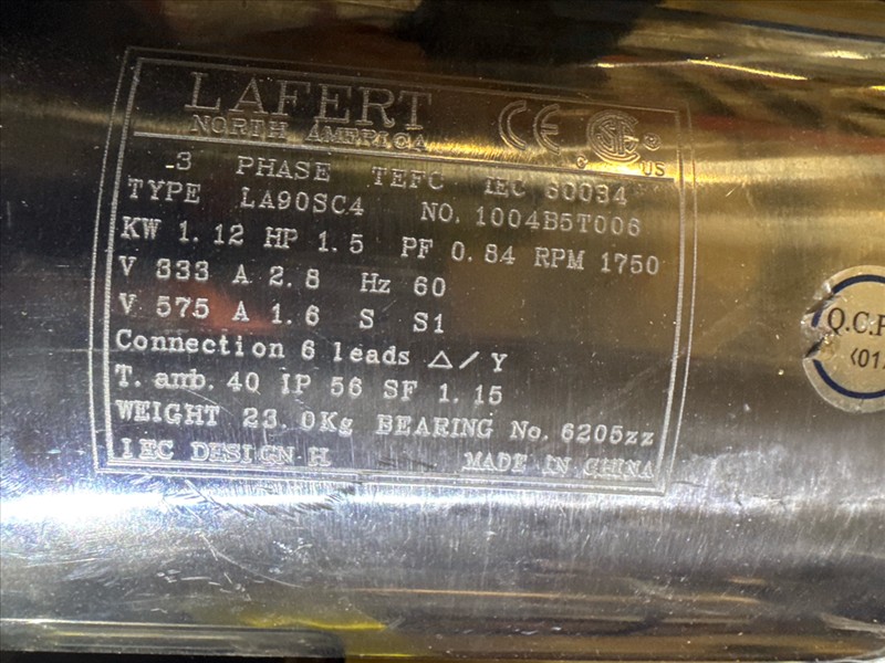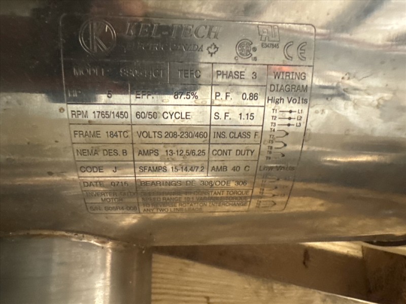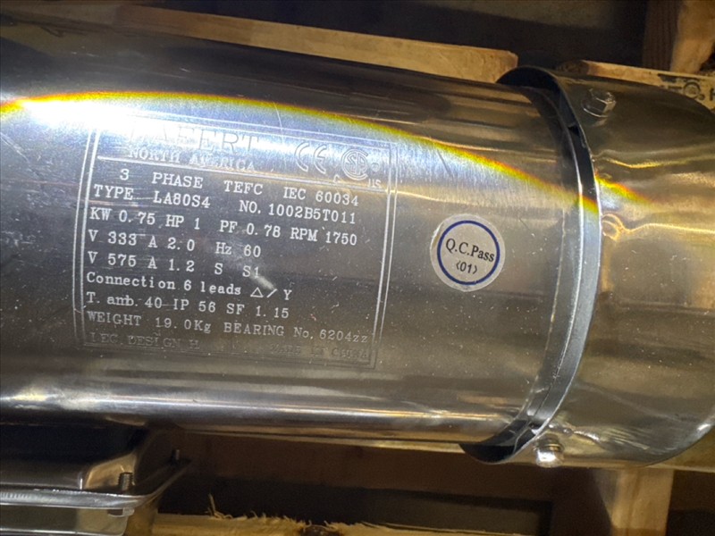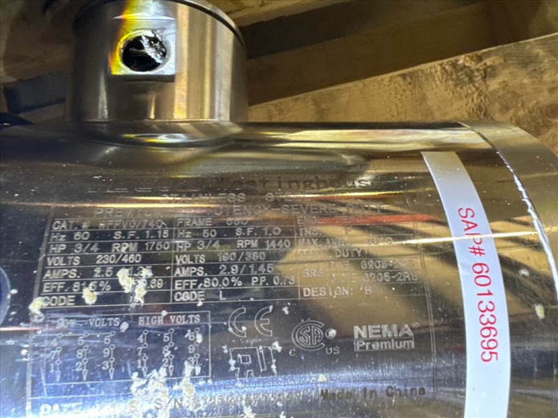(8) wash-down motors, 0.75/0.75/1/1/1/1.5/3/5 hp, s/s [Loc. Shipping/Rec.]