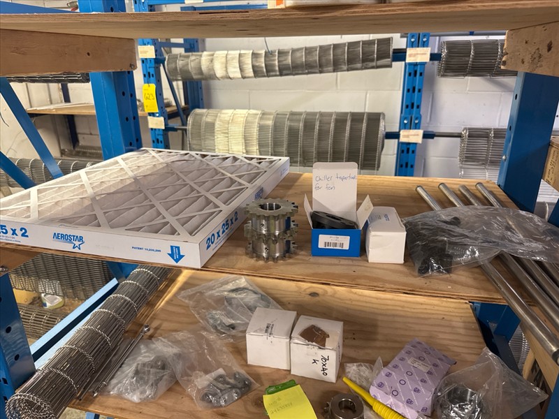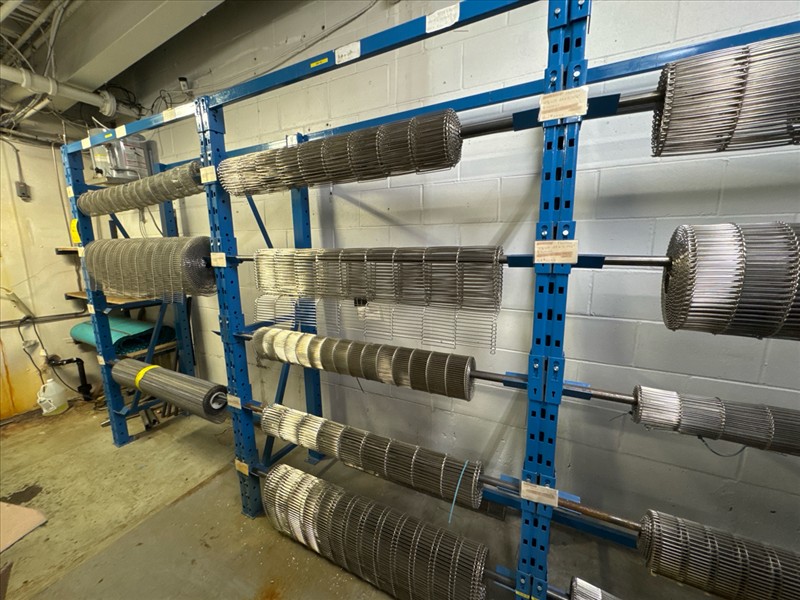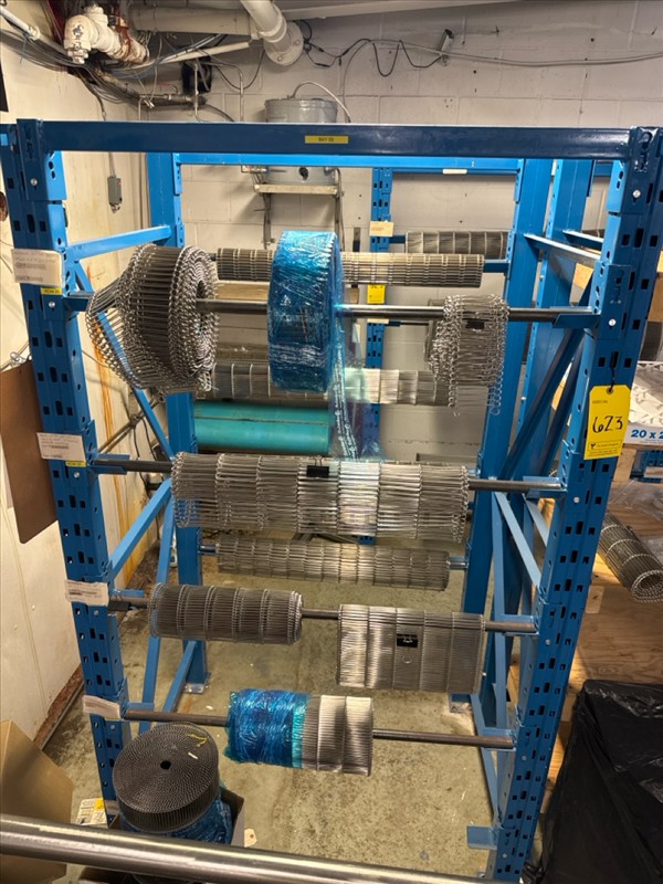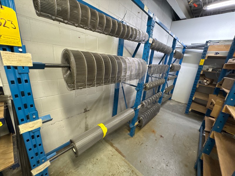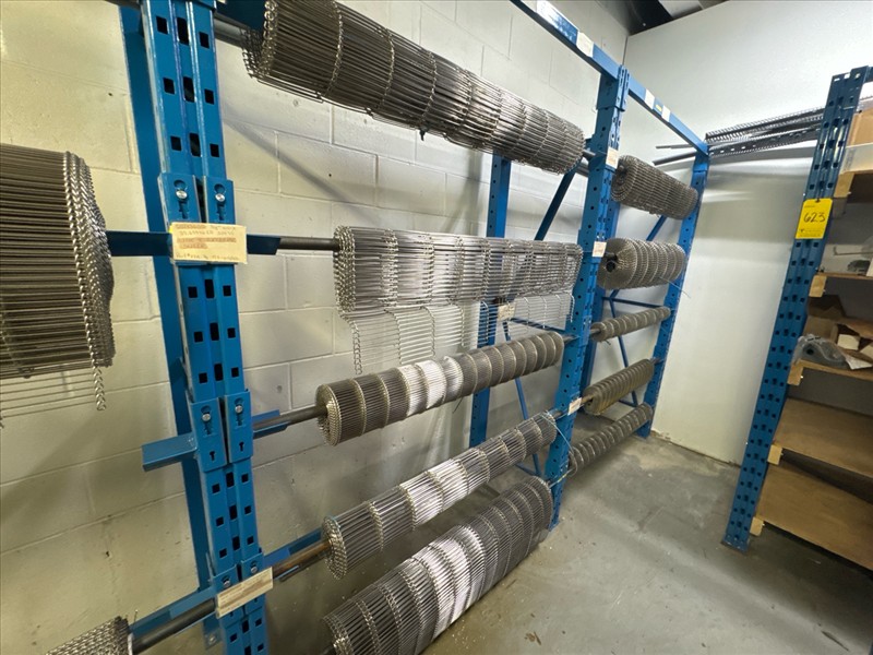 (7 sec.) racking c/w contents: stainless steel wire conveyor belting, etc. [Loc. Stores]