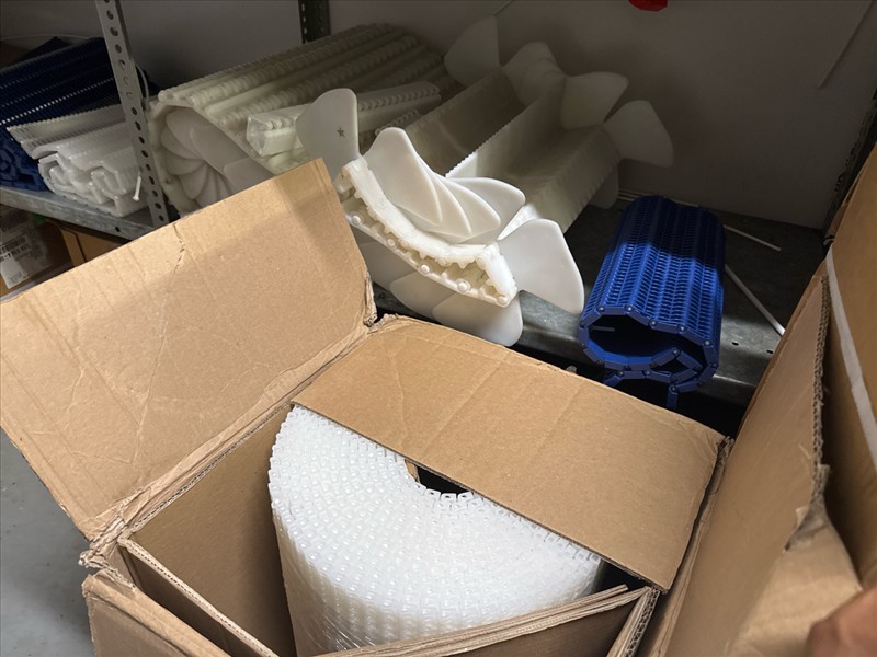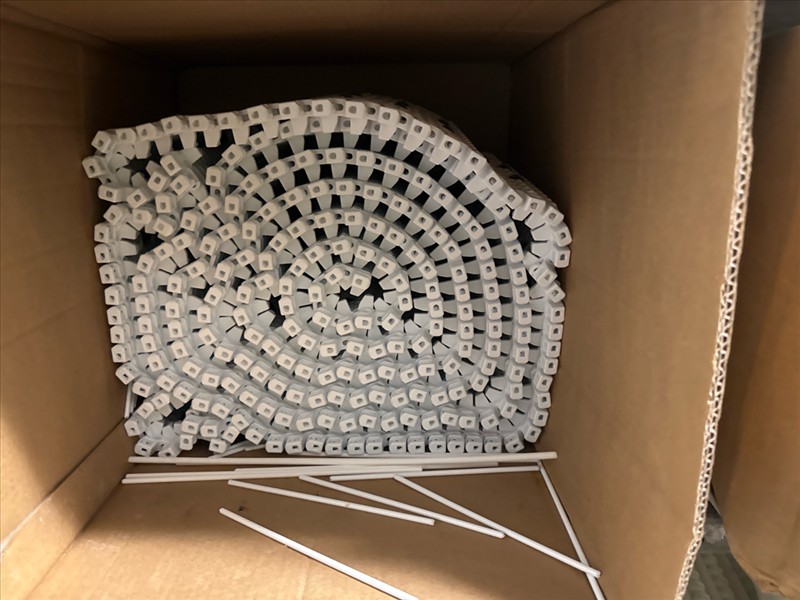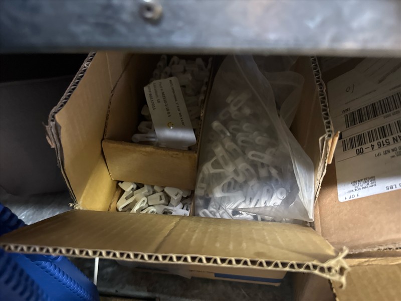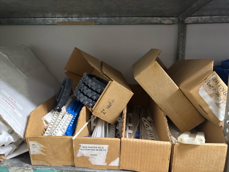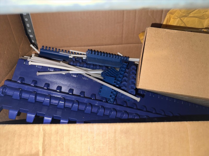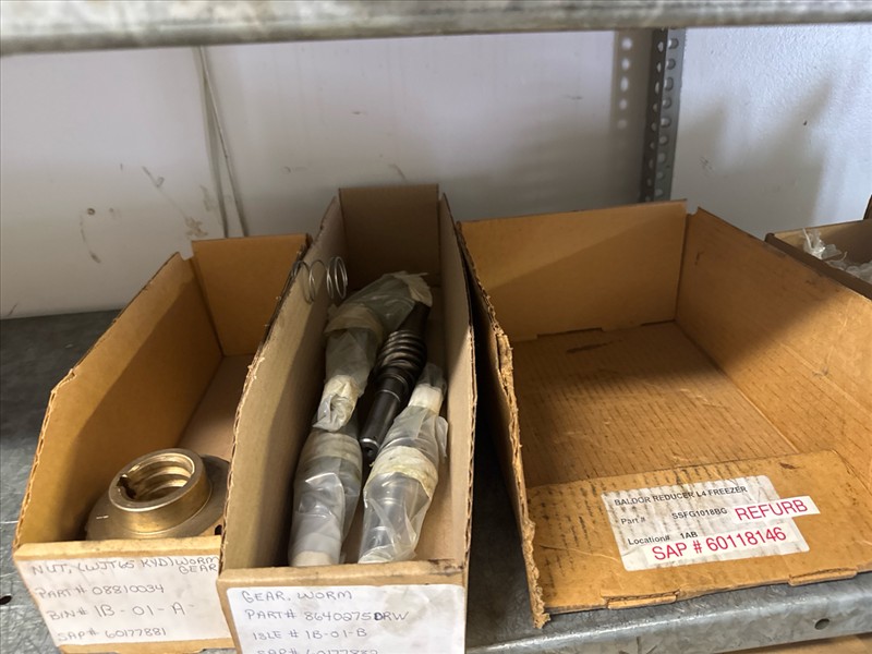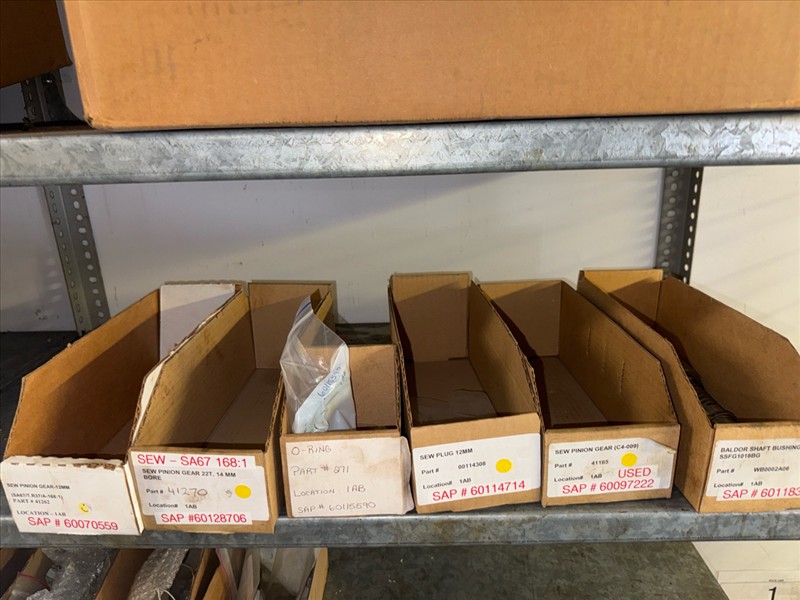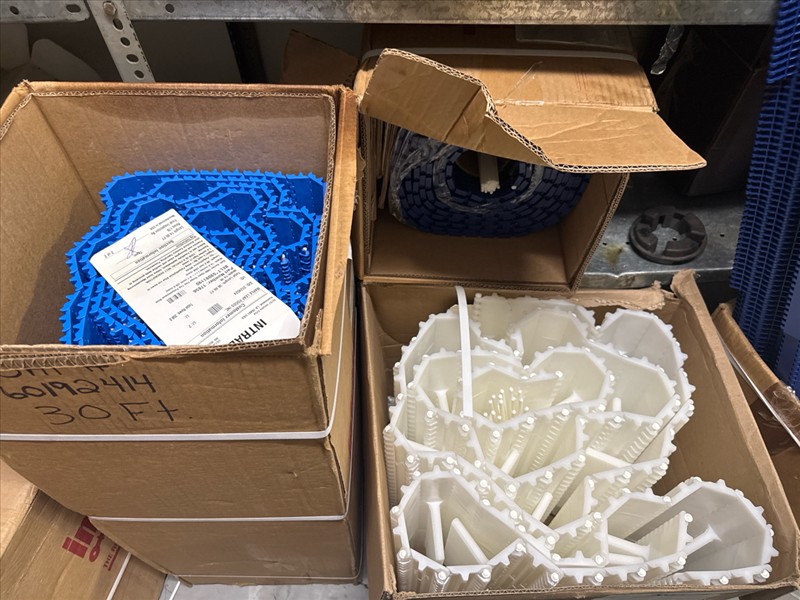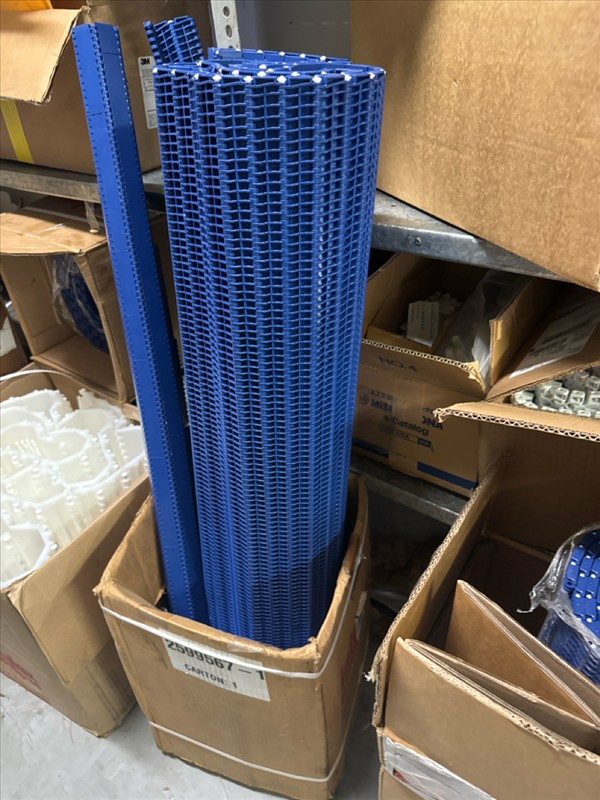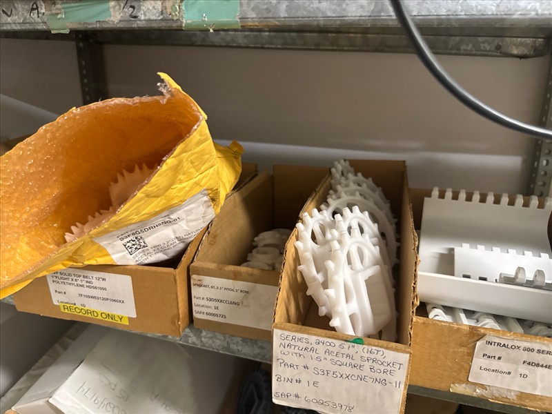 contents of racking: misc. conveyor belting, etc. (Rack Line 1, sec. A-E and Rack Line 2, sec. C-D) [Loc. Stores]