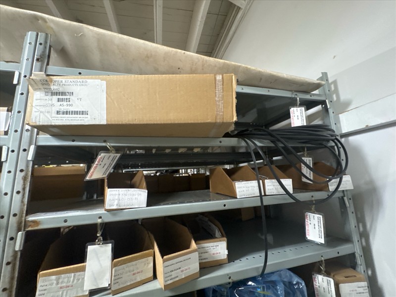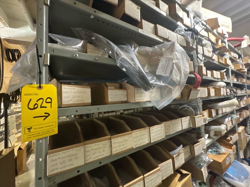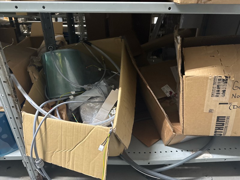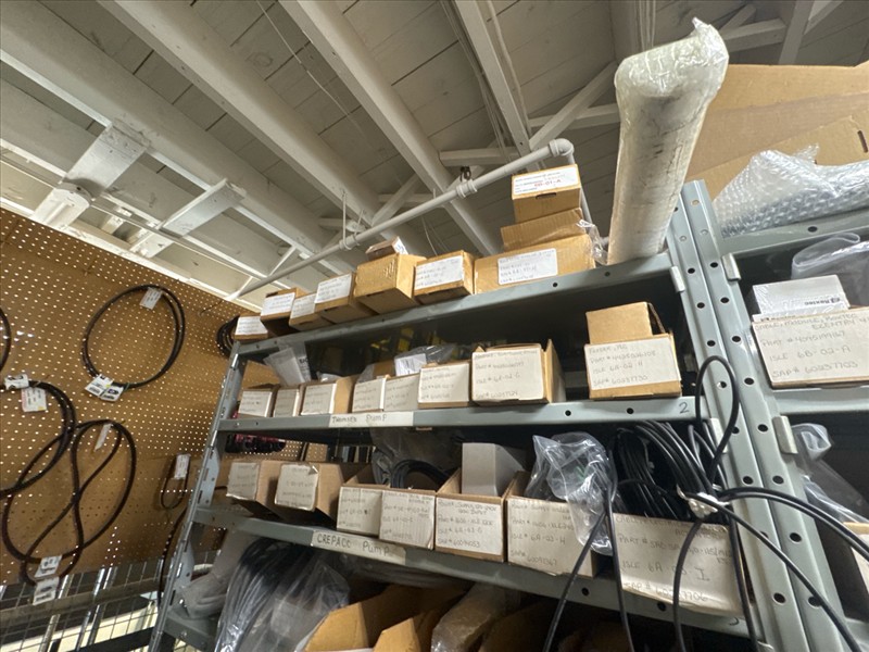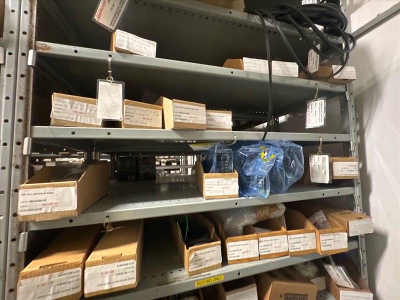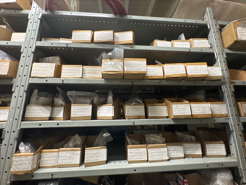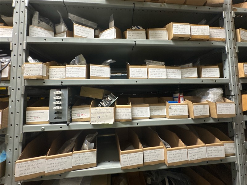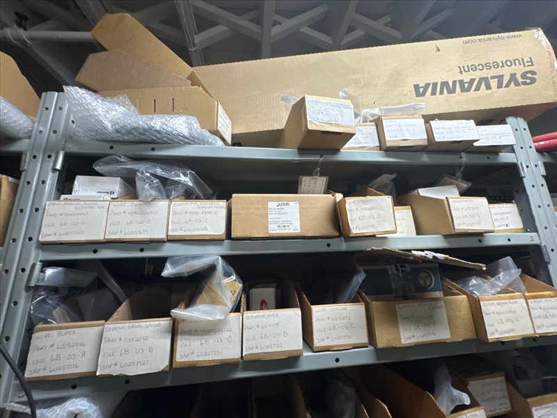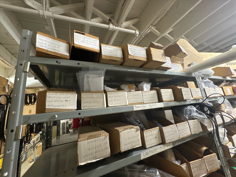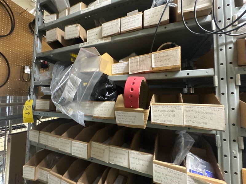 contents of racking: misc. Illapak, Ishida, Taconic, rubber channel spare parts, etc. (Rack Line 6, sec. A-D) [Loc. Stores]