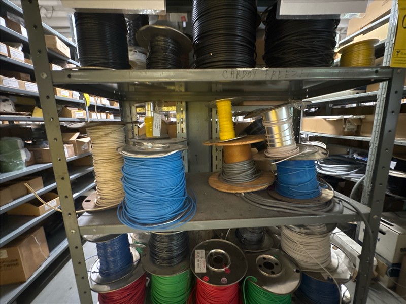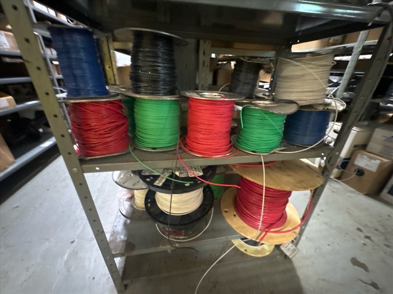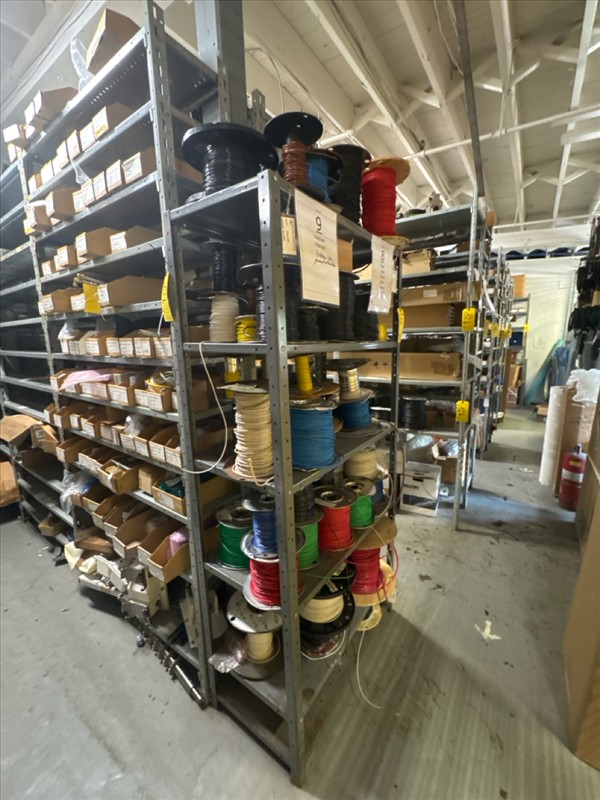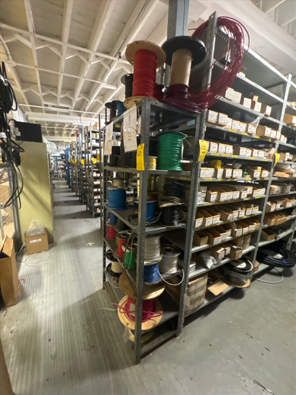 contents of racking: misc. wire and cable, etc. (Rack Line 7, sec. A-Level 4-5, sec. B-Level 4-5, sec. C-Level 5 and adjacent rack) [Loc. Stores]