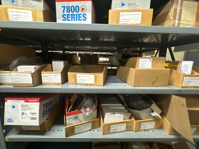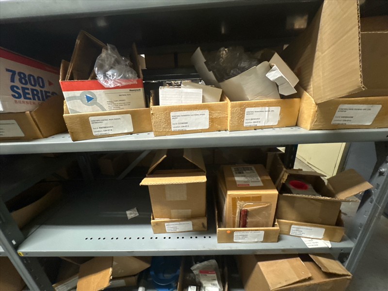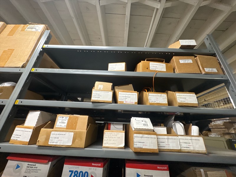 contents of racking: misc. Honeywell spare parts, etc. (Rack Line 13, sec. A) [Loc. Stores]