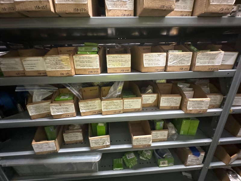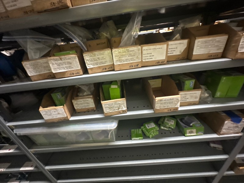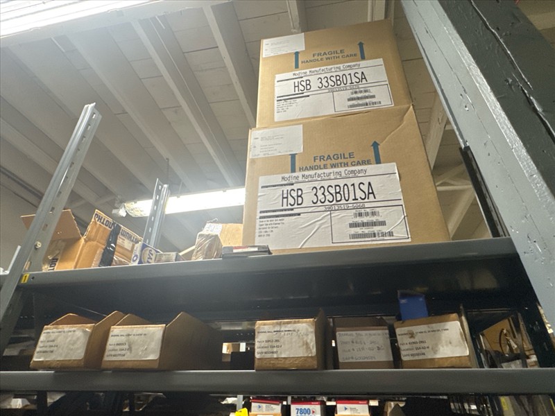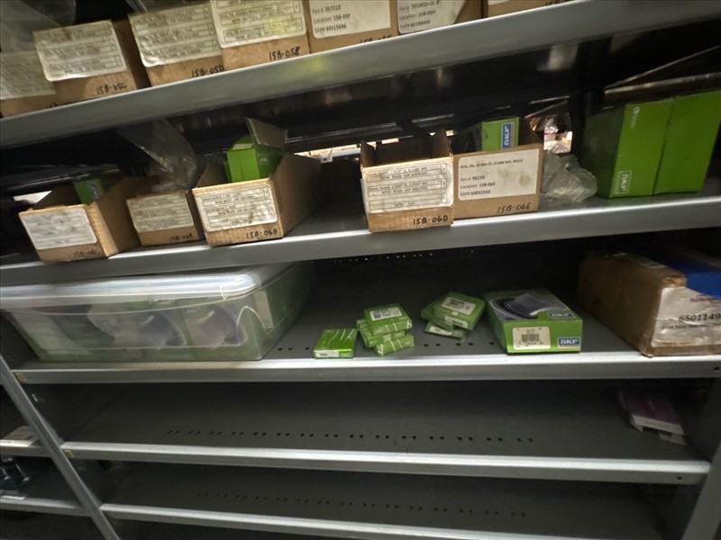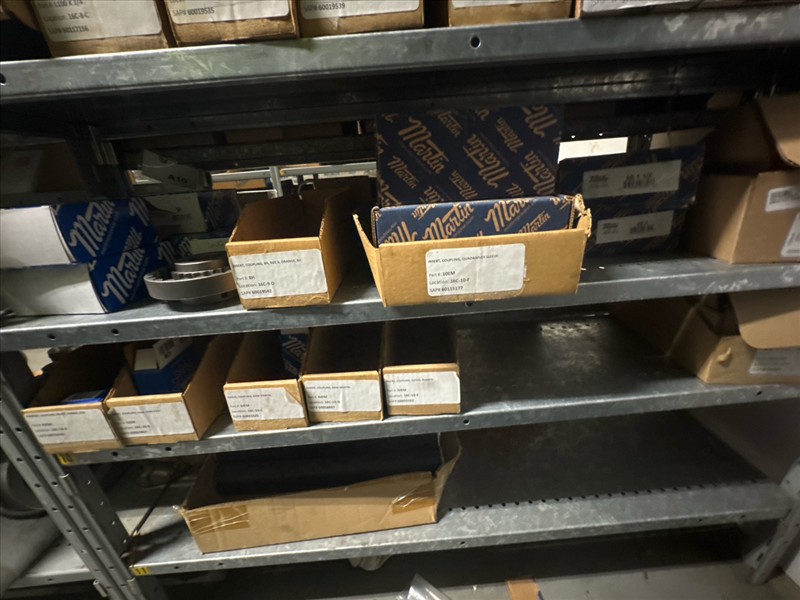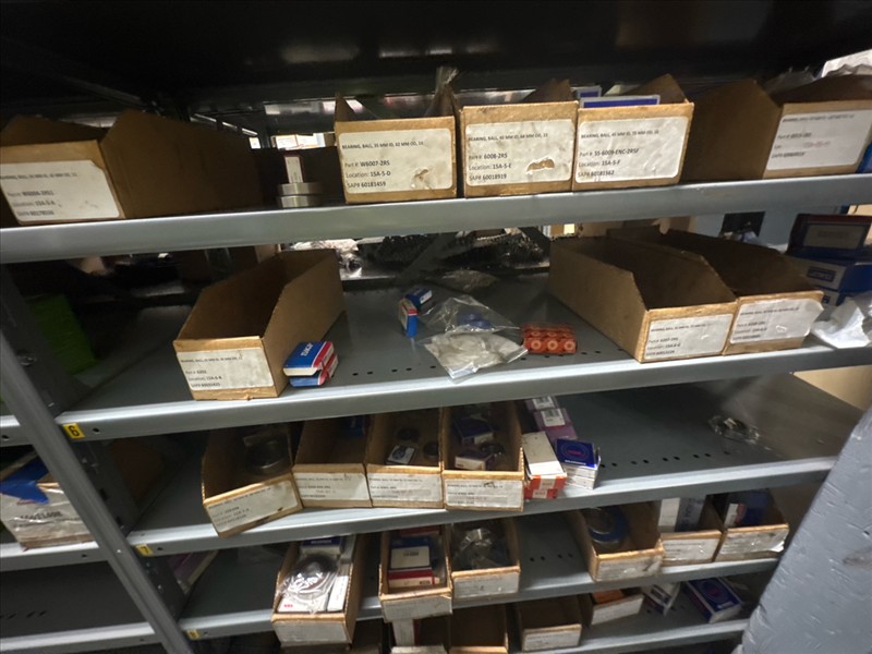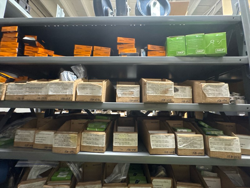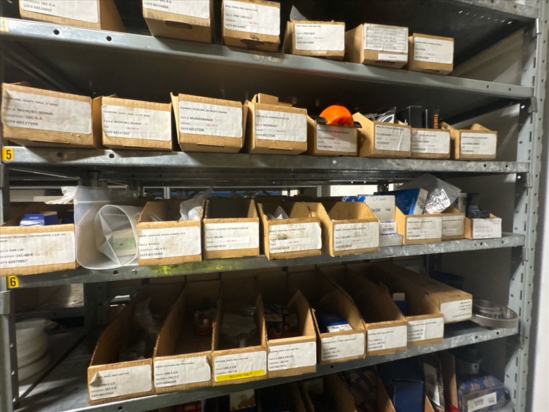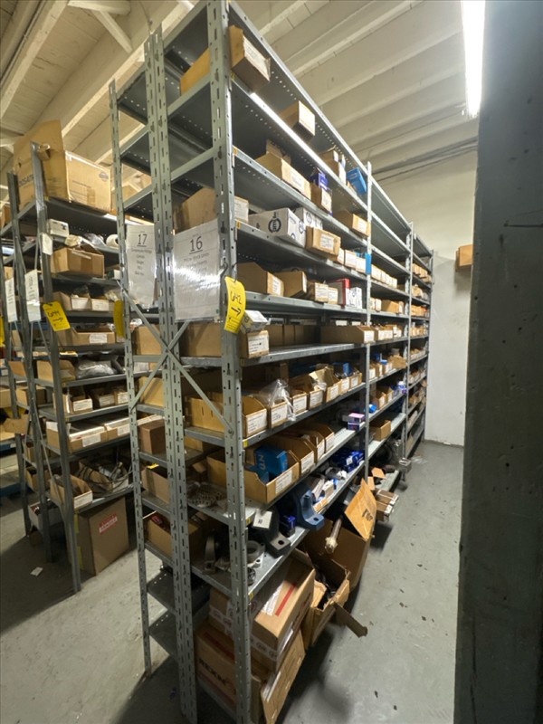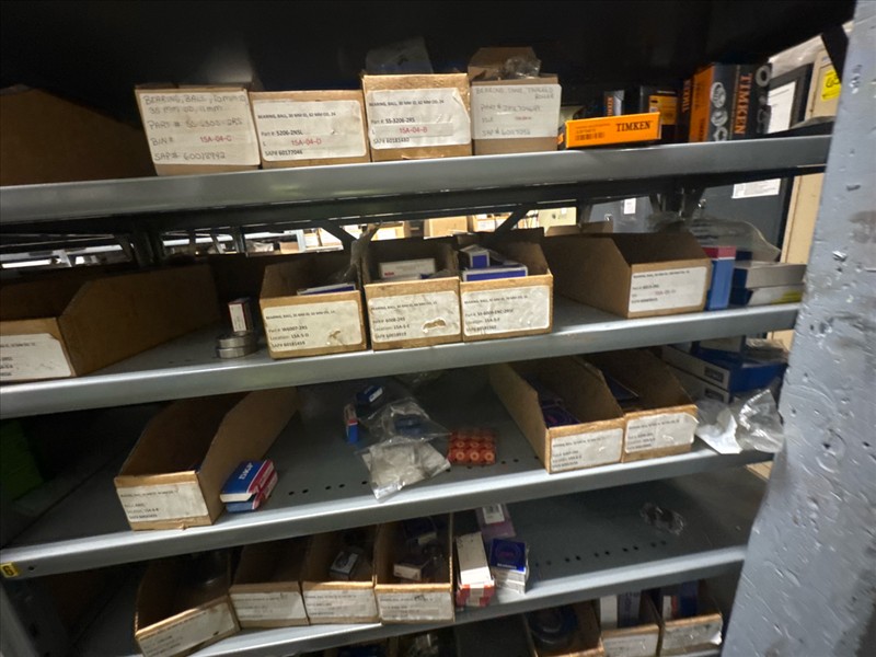 contents of racking: misc. bearings, seals, collars, pillow blocks, bearing inserts, drive couplers, sider inserts, etc. (Rack Line 15, sec. A-B and Rack Line 16, sec. A-C) [Loc. Stores]