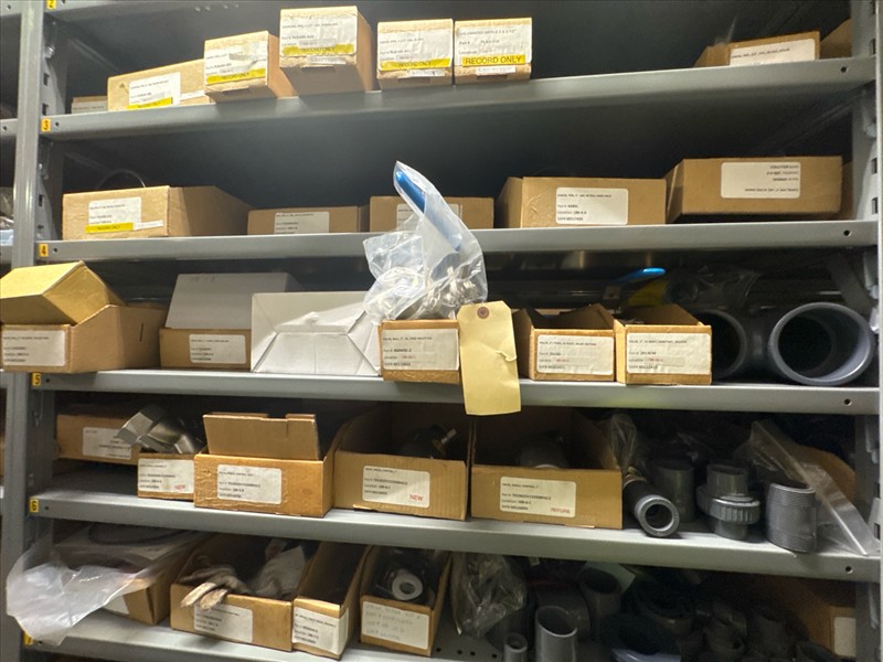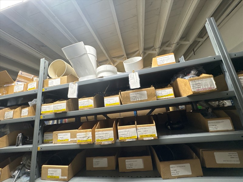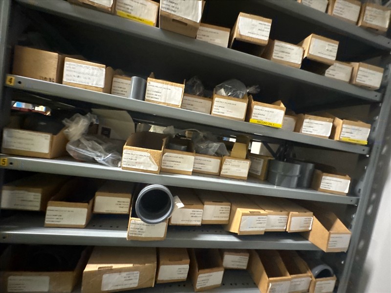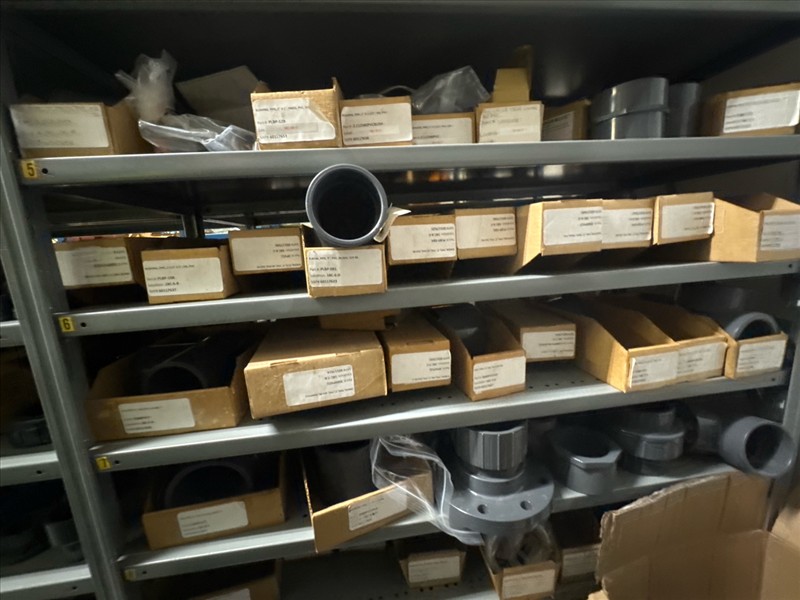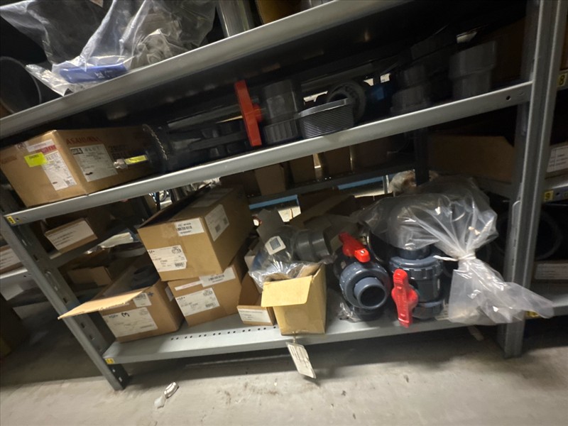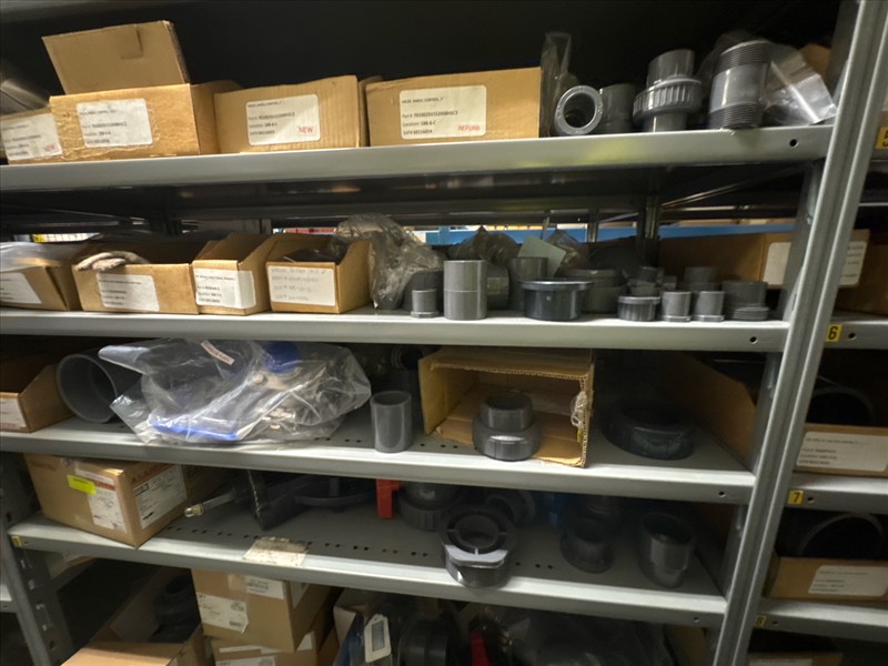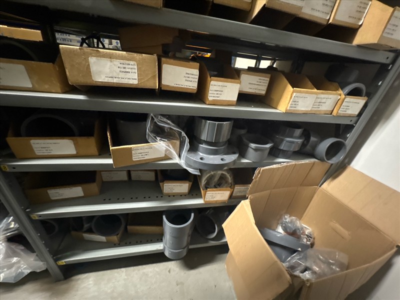 contents of racking: misc. ABS, valves, PVC fittings, etc. (Rack Line 18) [Loc. Stores]