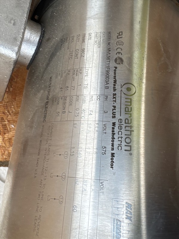 (2) Washdown Motors For Fans, Circulating, 575v 1hp, Part No. ML-0000001 [Loc. Hamilton]