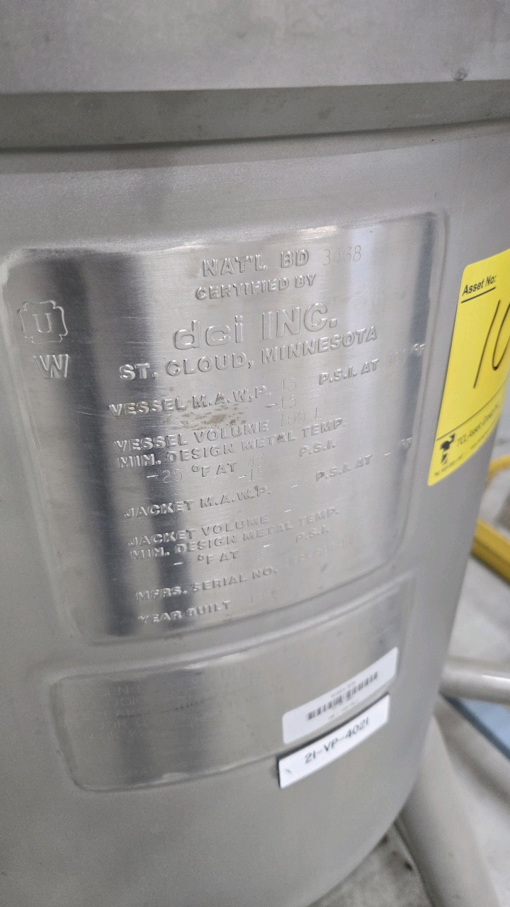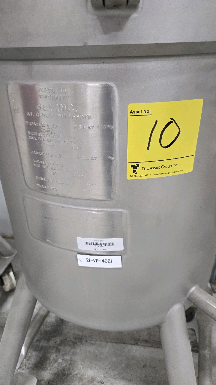 DCI 100L Portable pressurized s/s tank, jacketed, s/n 96PH53633B (PRO-077)