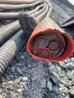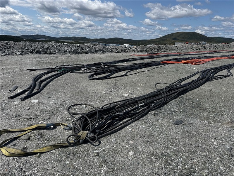 misc. WIRE AND CABLE incl.: *Please note: All weights provided are approximate, we encourage all interested parties to conduct their own inspections. * • (4) partial reels Tech 90 • reel partial RW90 (2nd Loc. Portal Pad) • loose cable (3rd Loc. Red Line Pad) PULLED WIRE AND CABLE INCLUDE: • approx.126 ft of 2.5 in. wire, approx. weight 815 lbs. • approx. 270 ft. of 2 in. wire, approx. weight of 810 lbs. • approx. 438 ft of 2 in. wire, approx. weight of 1310 lbs. • approx. 408 ft. of 2.5 in. wire, approx. weight of 2650 lbs. • approx. 408 ft. of 3 in. wire, approx. weight of 1224 lbs. • approx. 1530 ft. of 2.5 in. wire, approx. weight of 9945 lbs. • approx. 4038 ft. of 3 in. wire, approx. weight of 32300 lbs • approx. 2200 ft. of 2.5 in. wire, approx. weight of 14300 lbs. • approx. 1400 ft. of 1.5 in. wire, approx. weight of 1400 lbs. • approx. 832 ft. of 2 in. wire, approx. weight of 2495 lbs. • approx. 534 ft. of 1 in. wire, approx. weight of 370 lbs. • approx. 184 ft. of 3 in. wire, approx. weight of 1470 lbs. • approx. 966 ft. of 2 in. wire, approx. weight of 2895 lbs. • approx. 1968 ft. of 1 in. wire, approx. weight of 980 lbs. (Subject to Confirmation)
