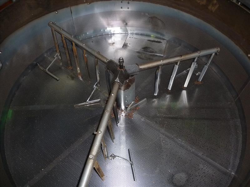 Jabez Burns cooler/stirrer/de-stoner model Stirflex c/w airveying discharge duct, Eriez magnet model 20" RE RPS, style 9706716 w/ s/s enclosure, & s/s hood w/ lighting