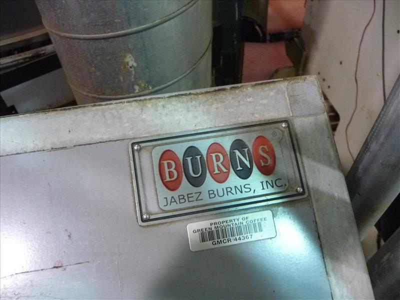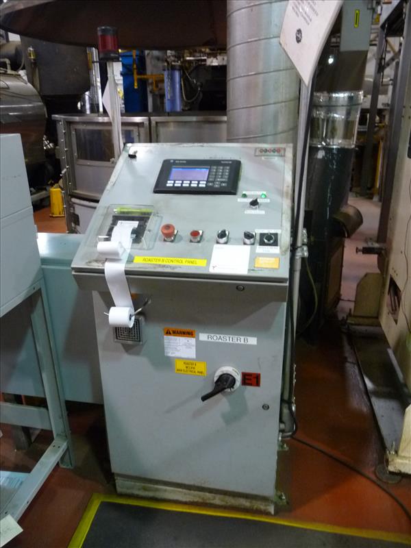 Jabez Burns gas-fired batch coffee roaster, model 23R ACO Thermalo (model 23R-04307 on control panel), ser. no. 31R-287, c/w Maxon Ovenpak gas burner, model 400, size 422M, assembly no. 53549 7 95, (roaster rebuilt 2013), c/w Jabez Burns automatic control console c/w Allen-Bradley PLC model MicroLogix 1500, Allen-Bradley HMI control model PanelView 550, printer, & workstation, (Roaster "B")