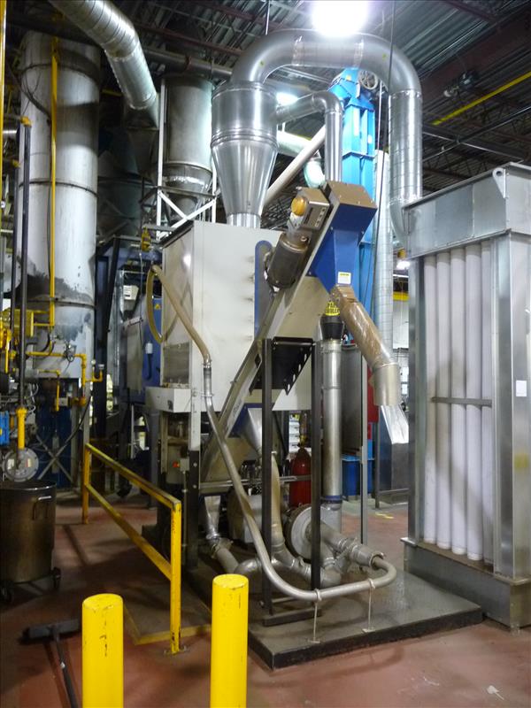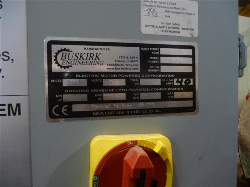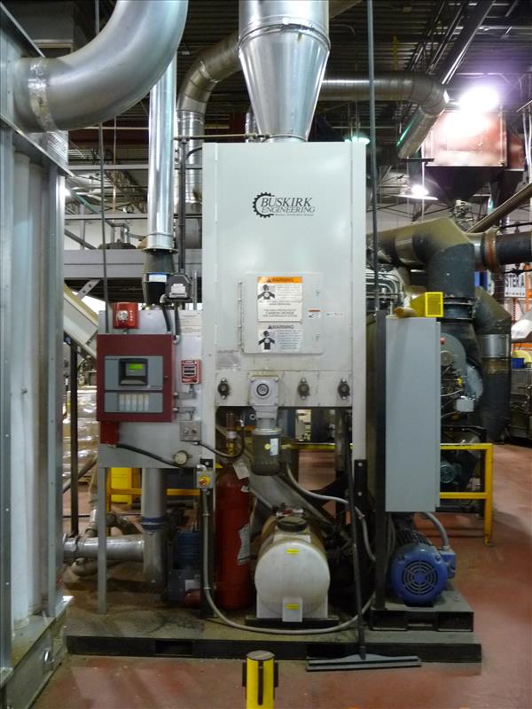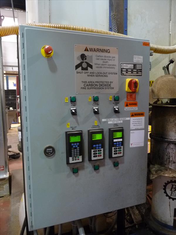Buskirk Engineering biomass densification and pelletizing system, model PM1220, ser. no. 1170, (mfg. date 11/2011), c/w Ansul CO2 fire suppression system, w/ Honeywell notifier model RP-2002, Airbender Spark Cooler model SC6C3K, & Honeyville dust collector, model SF-30, ser. no. 12S210