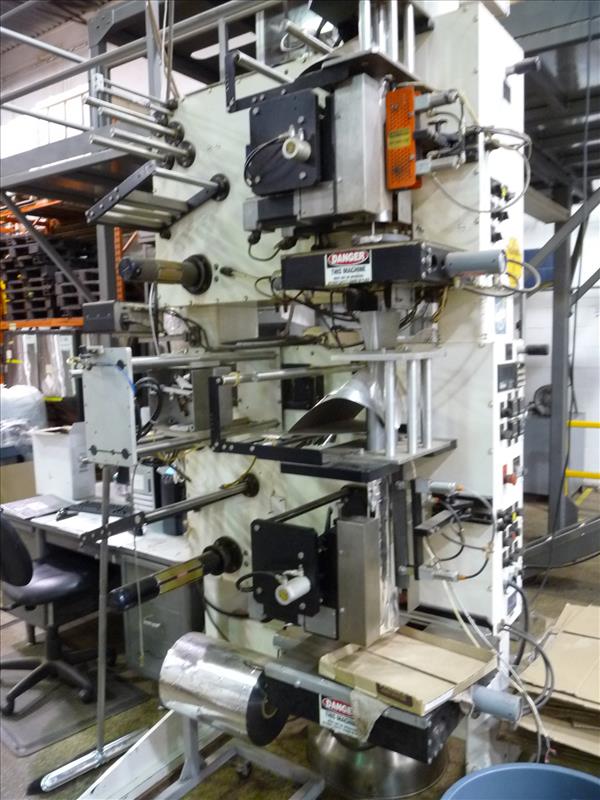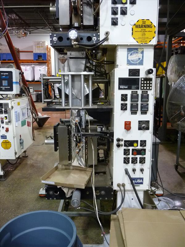 Key-Pak Machines open-sided vertical form-fill-seal double bagging machine, model V-250S, ser. no. 497B, c/w GEI Mateer auger filler, Markem Smart Date-2 printer, nitrogen flush, (was filling single-serving ground coffee into filters and then into bags, 2 ounce & 8 ounce) (Key Pak #2)