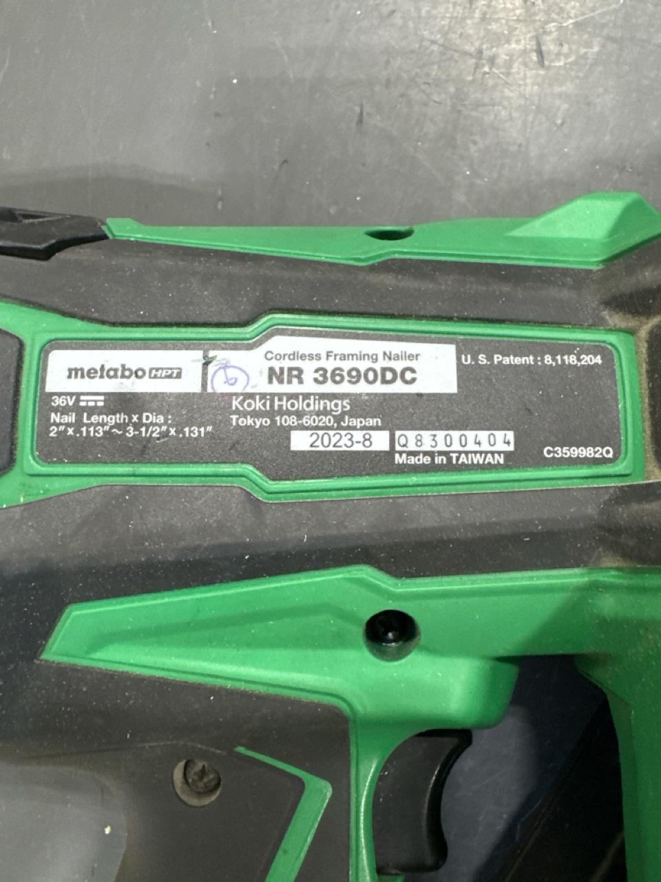 Metabo HPT cordless framing nailer, mod. NR3690DC, 35/18V c/w (1) battery and (1) charger [Loc. Tool Crib]