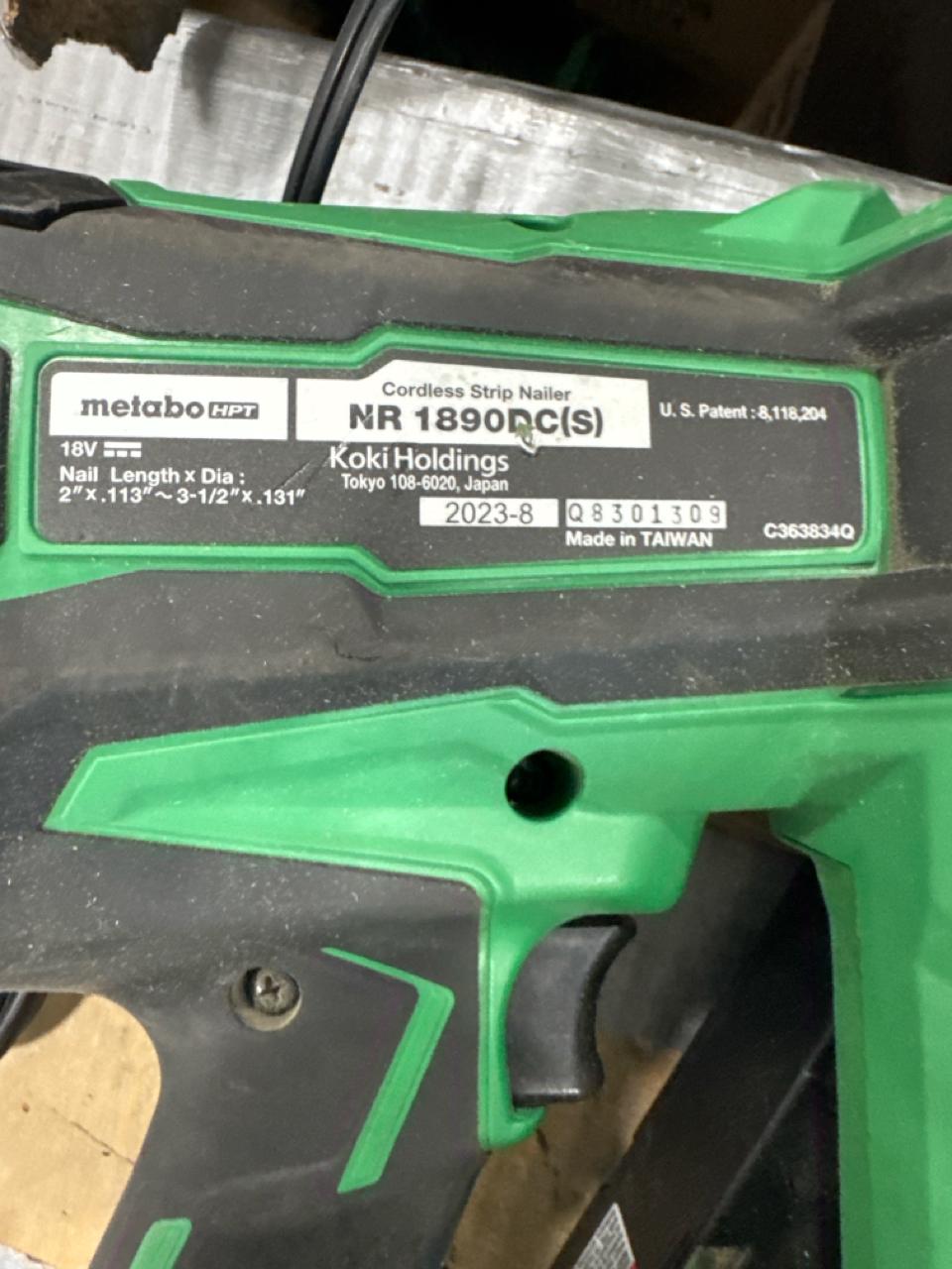 Metabo HPT cordless framing nailer, mod. NR3690DC, 35/18V c/w (1) battery and (1) charger [Loc. Tool Crib]