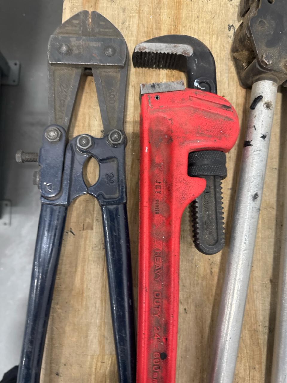 Lot of Pipe Wrench and Bolt Cutter [Loc. Tool Crib]