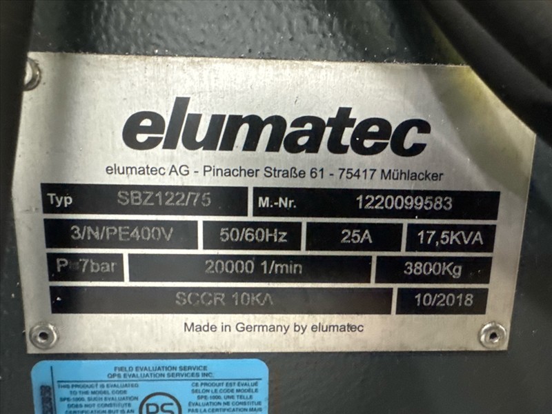 Elumatec 5-axis Profile Machining Center, mod. SBZ122/75, ser. no. 1220099583 (2018), approx. 17.5 ft. c/w Hydrapedia VWK7/1-S chiller [Loc. Fabrication]