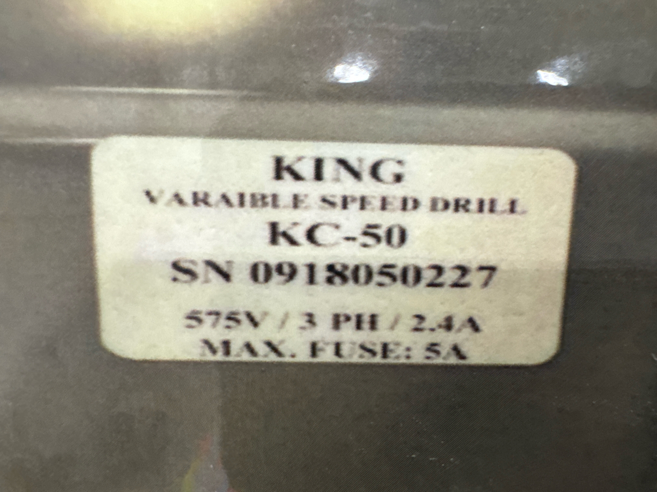 King Variable Speed Drill Press, mod. KC-50, ser. no. 0918050227, 2 hp [Loc. Fabrication]