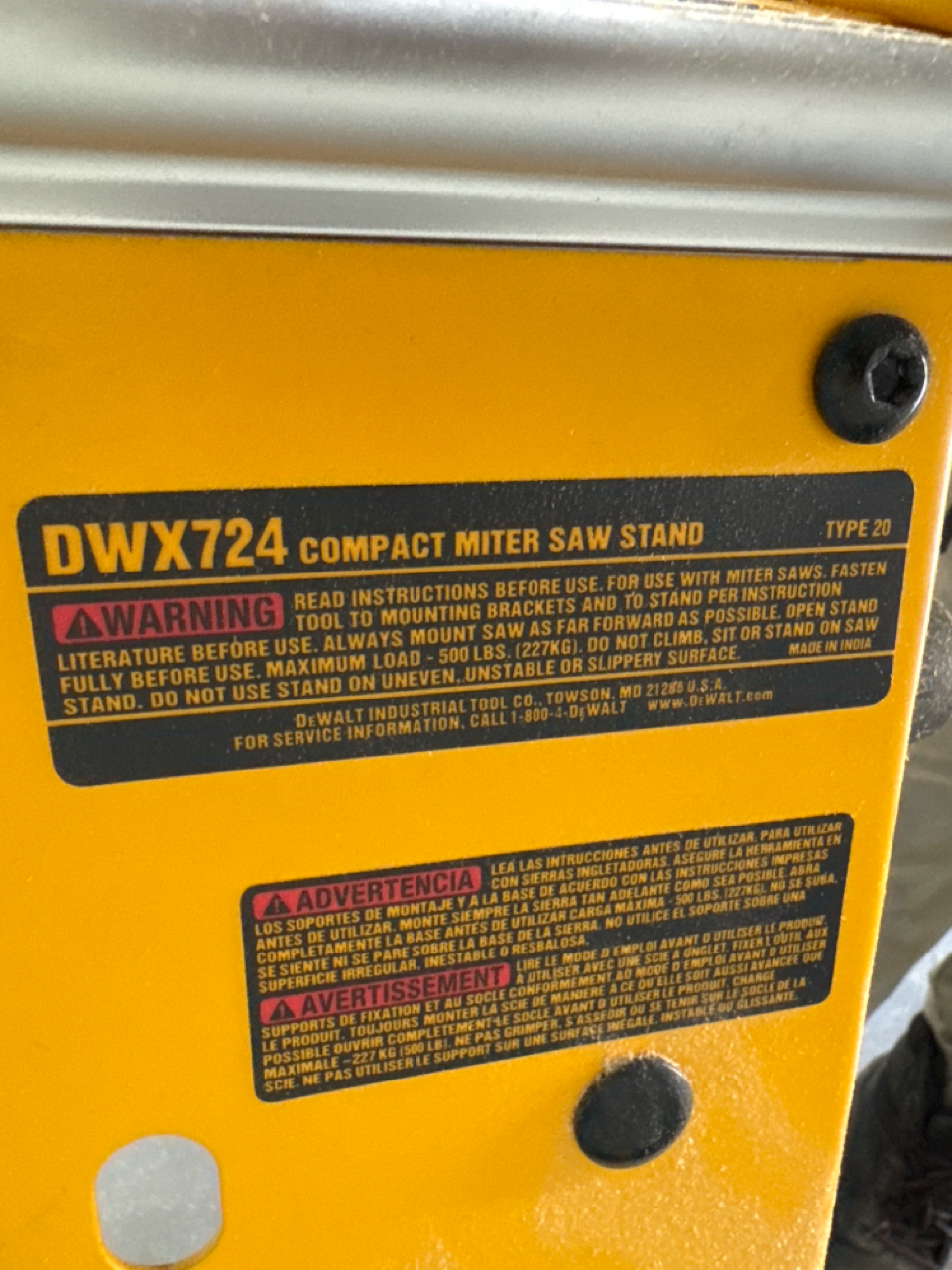DeWalt Sliding Compound Miter Saw, mod. , 12 in. w/ stand [Loc. Fabrication]