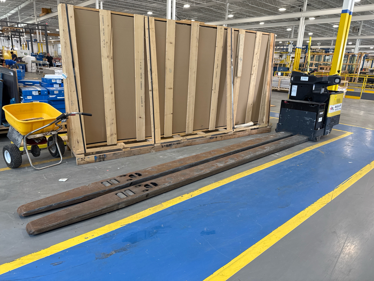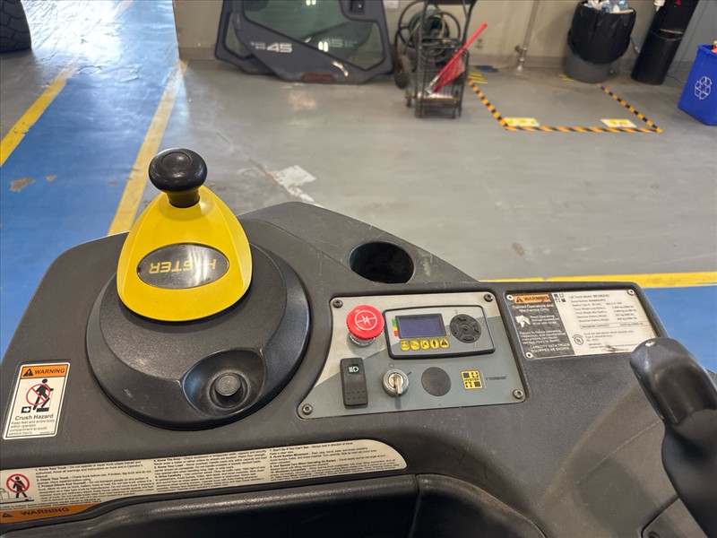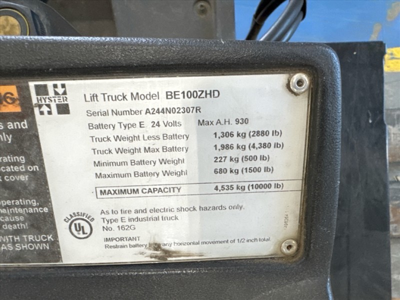 Hyster Ride-On Pallet Truck, mod. BE100ZHD, ser. no. A244N02307R, 24V, 10000 lbs. cap., 16 ft. forks c/w charger [Loc. Mat. Hand.]