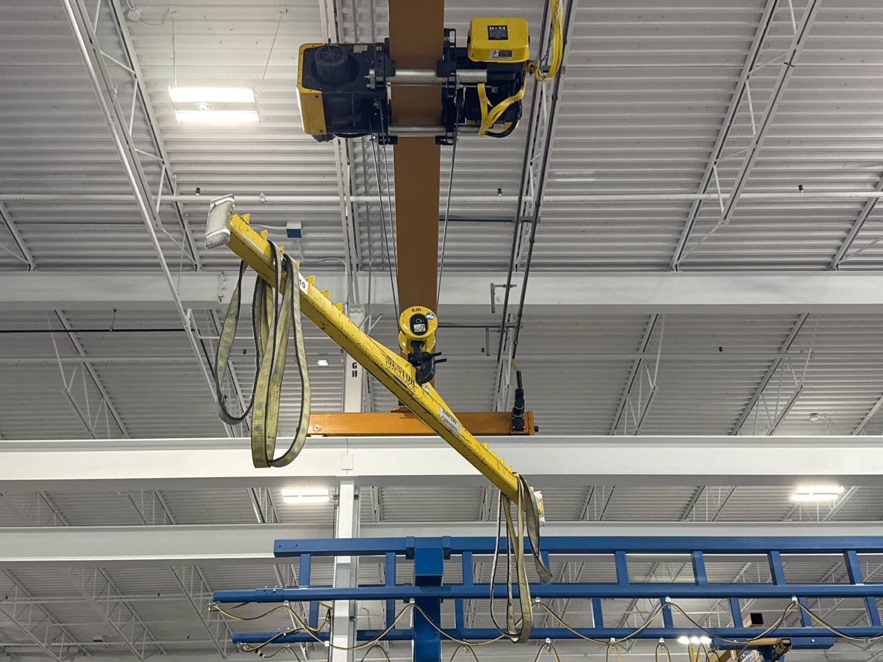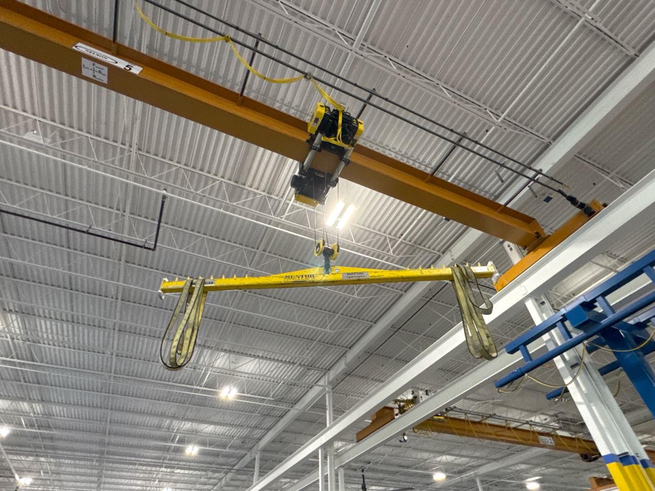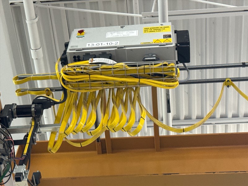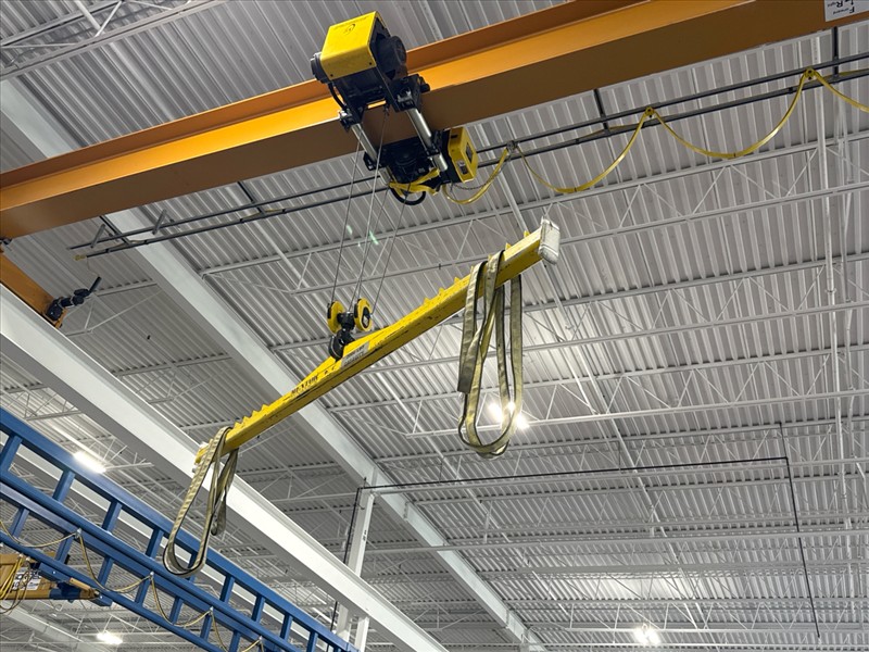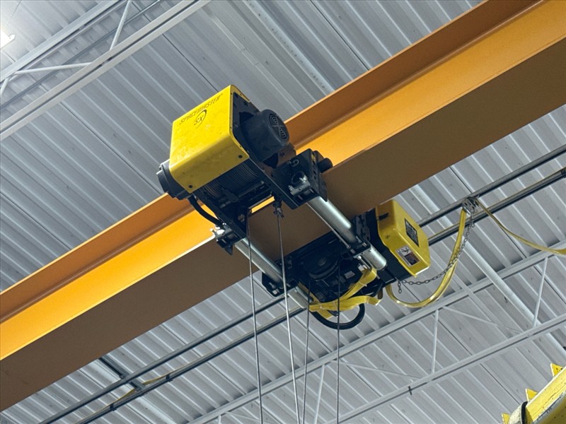 Nelson Bridge Crane, mod. , 5-ton cap., single-girder, 48 ft. span w/ underslung SpaceMaster SX wire-rope hoist, remote control (excluding runway and buss bar) [Loc. Assembly]