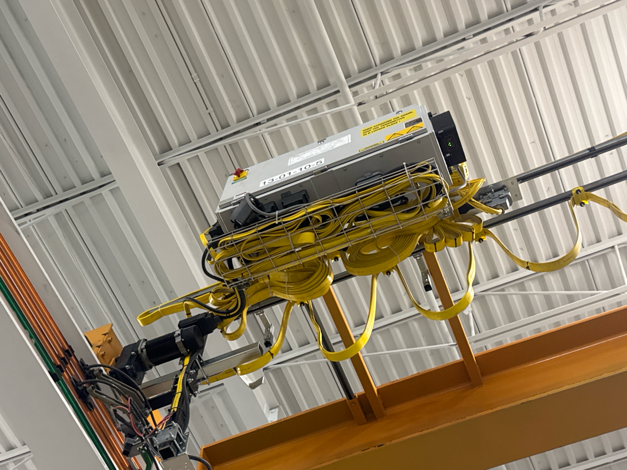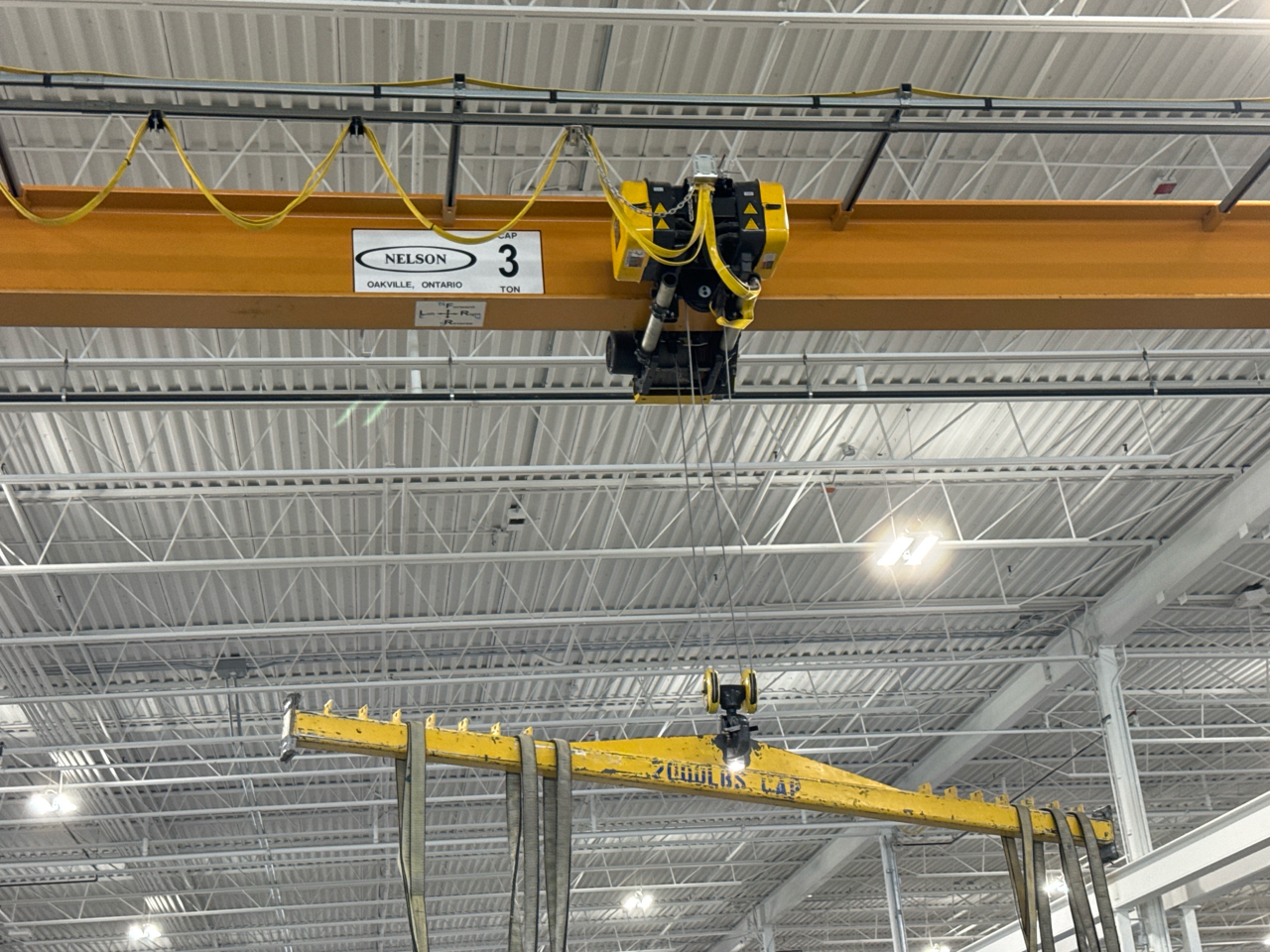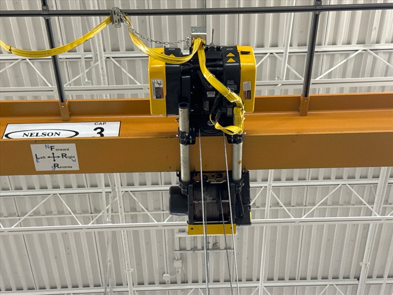 Nelson Bridge Crane, mod. , 3-ton cap., single-girder, 48 ft. span w/ underslung SpaceMaster SX wire-rope hoist, remote control (excluding runway and buss bar) [Loc. Assembly]