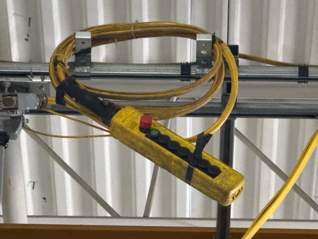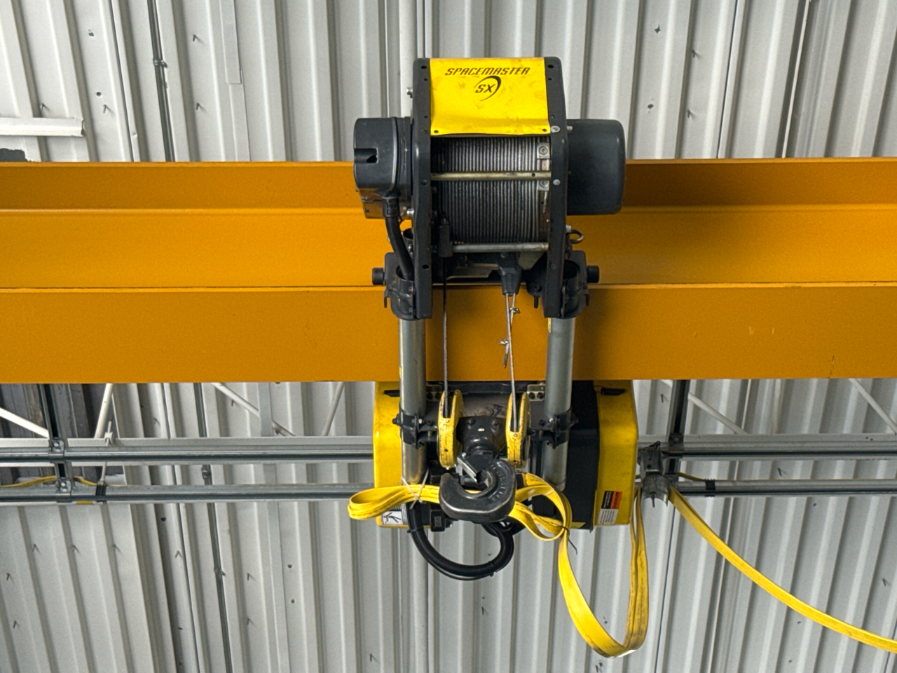 Nelson Bridge Crane, mod. , 3.2-ton cap., single-girder, 38 ft. span w/ underslung SpaceMaster SX wire-rope hoist, remote control (excluding runway and buss bar) [Loc. Fabrication]
