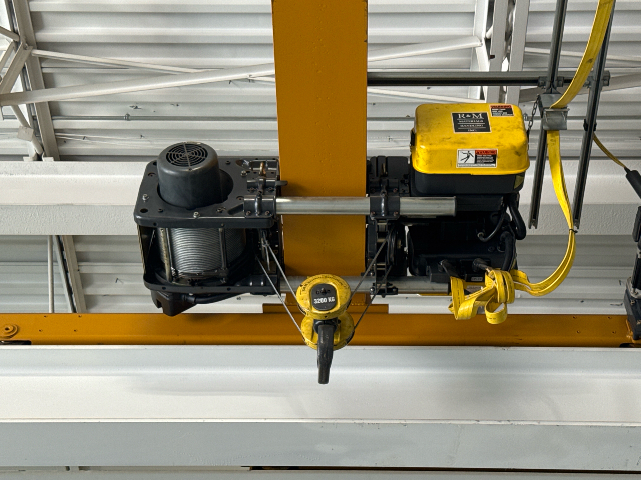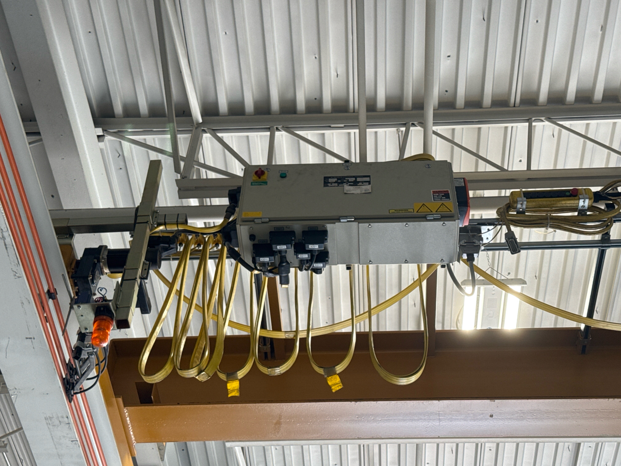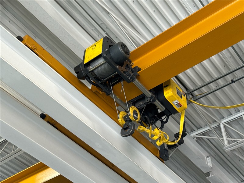 Nelson Bridge Crane, mod. , 3.2-ton cap., single-girder, 38 ft. span w/ underslung SpaceMaster SX wire-rope hoist, remote control (excluding runway and buss bar) [Loc. Fabrication]