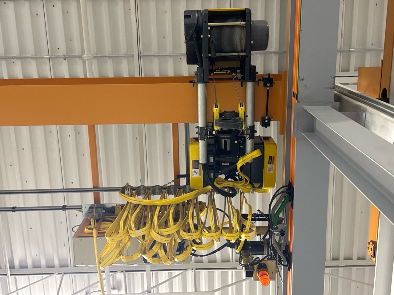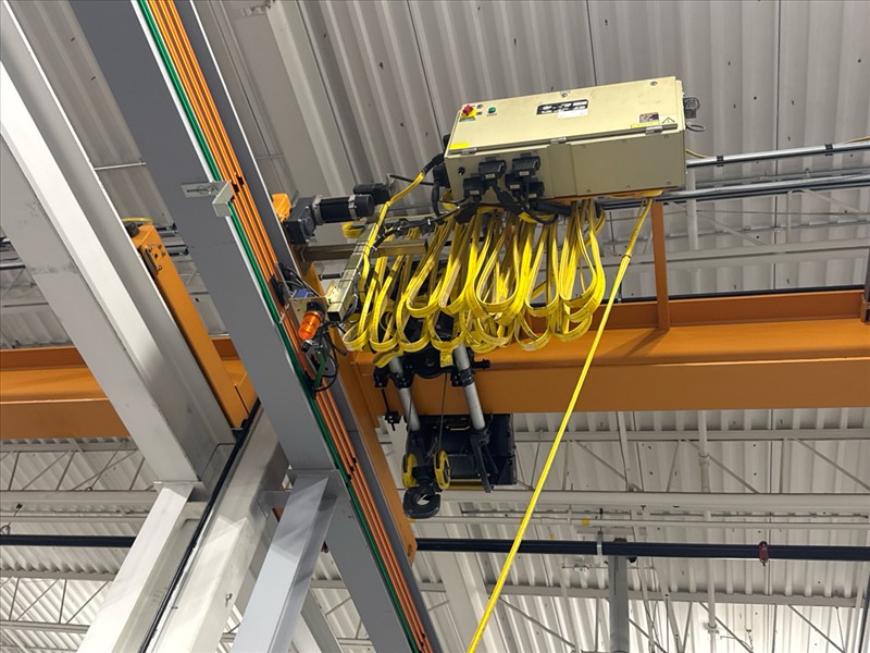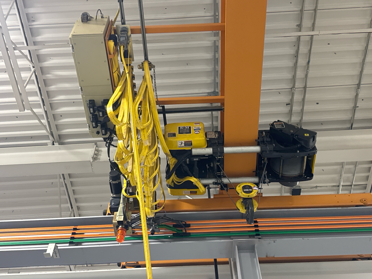 Nelson Bridge Crane, mod. , 3.2-ton cap., single-girder, 38 ft. span w/ underslung SpaceMaster SX wire-rope hoist, remote control (excluding runway and buss bar) [Loc. Fabrication]